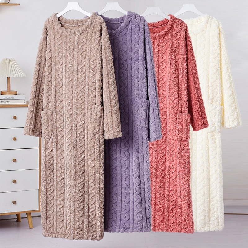 睡裙秋冬款长款珊瑚绒睡袍睡衣大码新款长袖宽松加厚浴袍保暖浴裙