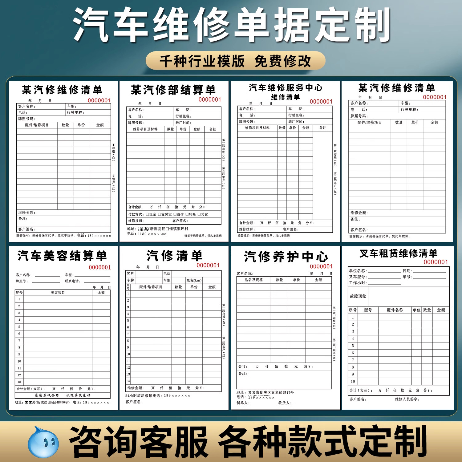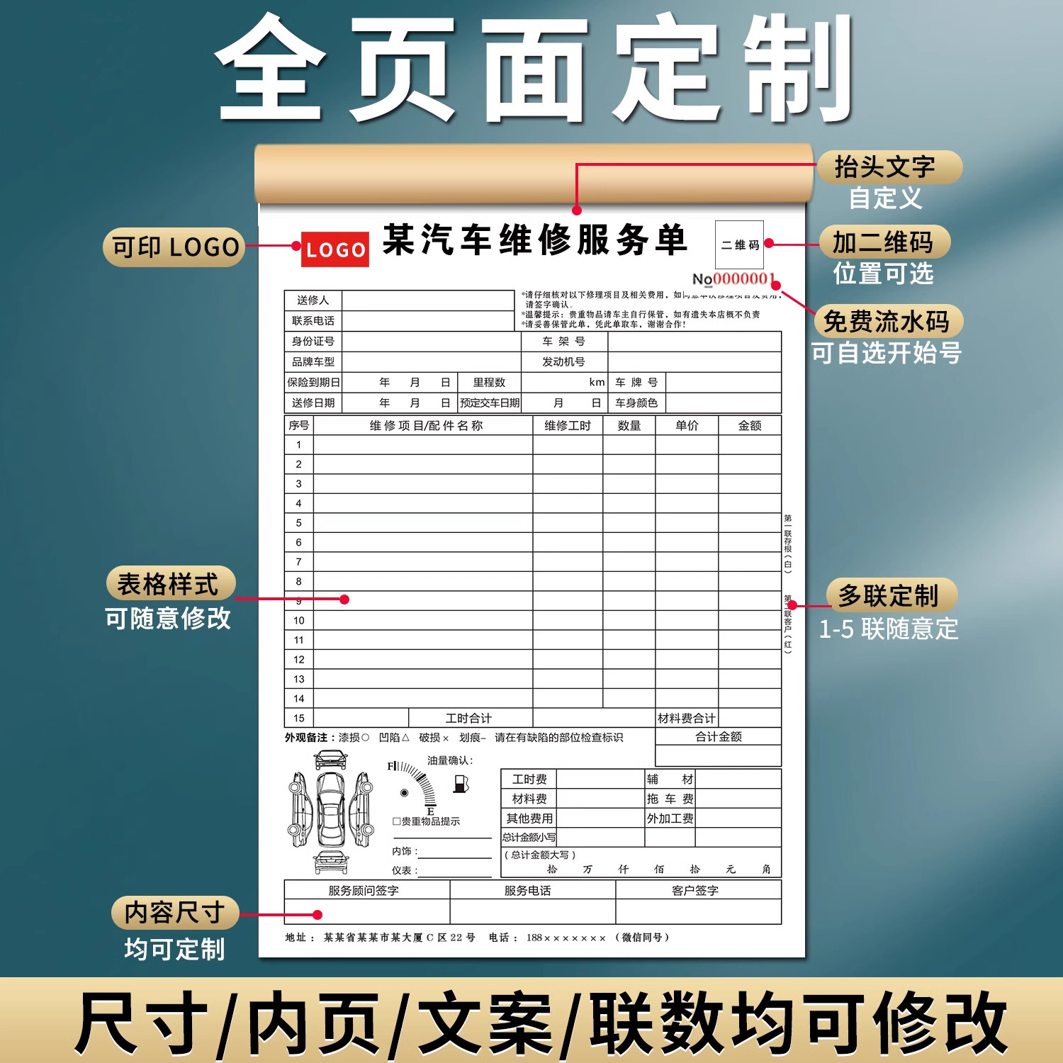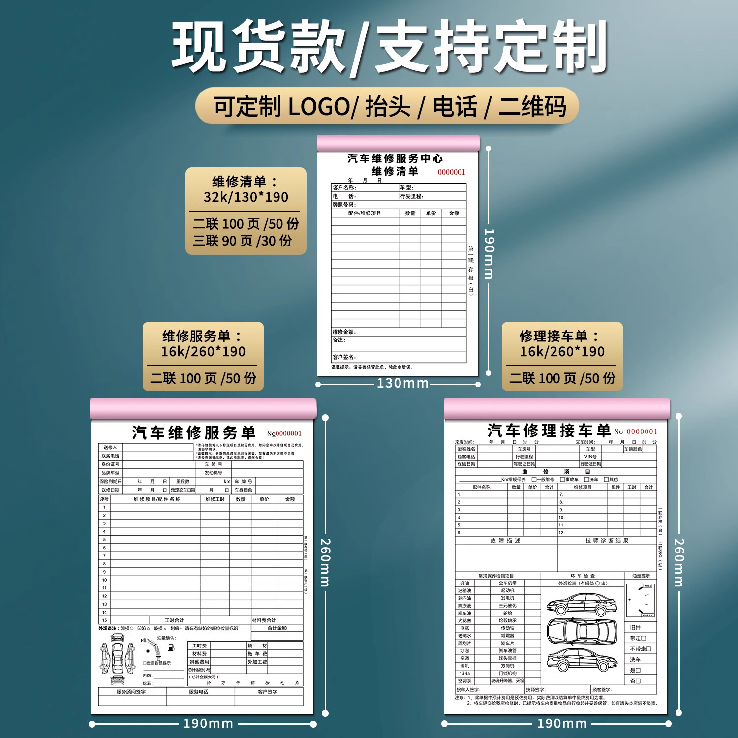 汽车维修结算单二联三联服务单修理厂接车单定做汽修厂派工施工单维修报价结算清单4S店接车单修车报价单包邮