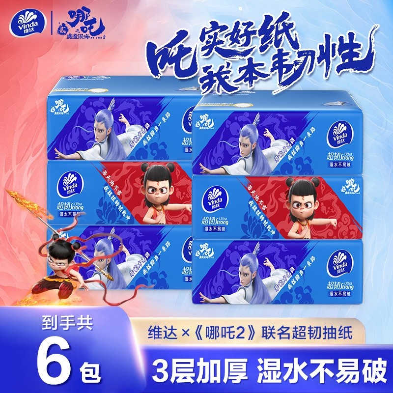 维达×《哪吒2》联名款超韧抽纸100抽3层M码高颜值国潮风超韧加厚