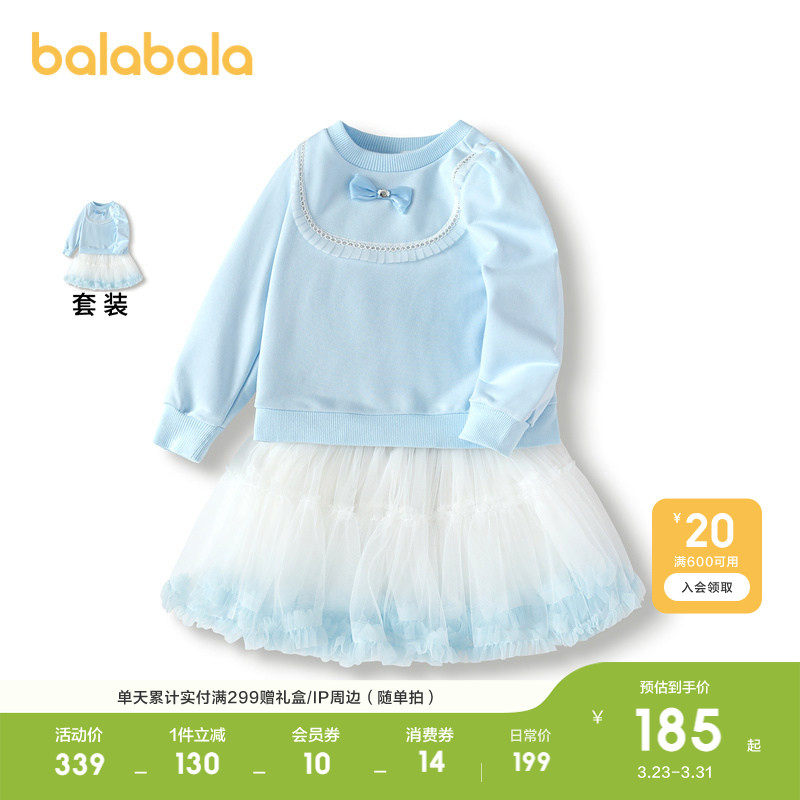 巴拉巴拉童装儿童套装女童上衣春装2026纱裙两件套休闲小童甜美潮