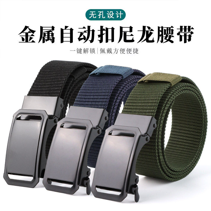 男款自动扣2025新款男士腰带帆布编织尼龙休闲学生裤带快拆