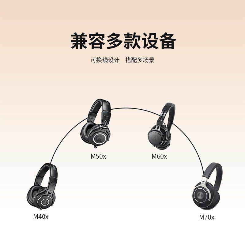 M50x耳机线适用铁三角M40X连接线M60X音频线M70X耳机升级线弹簧线