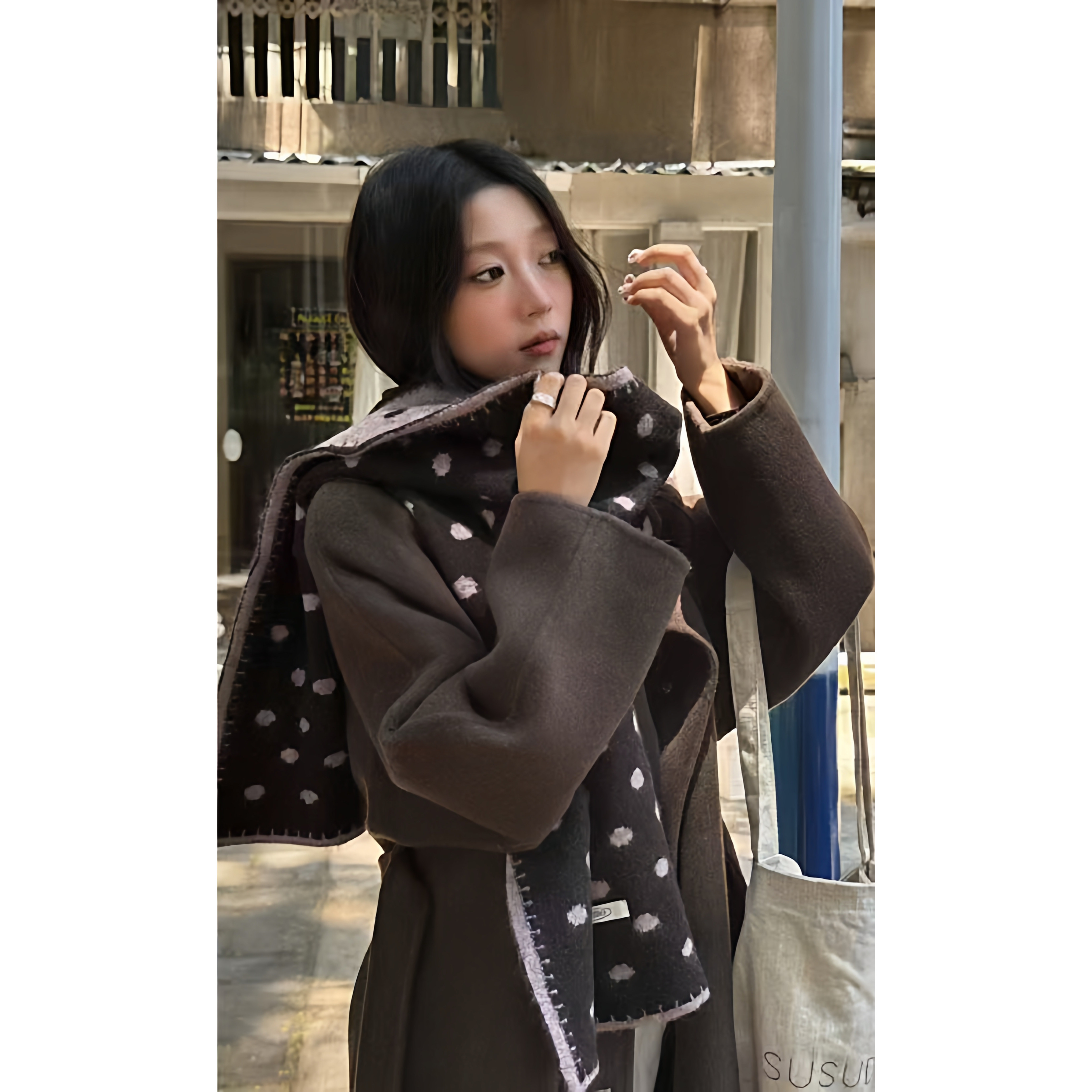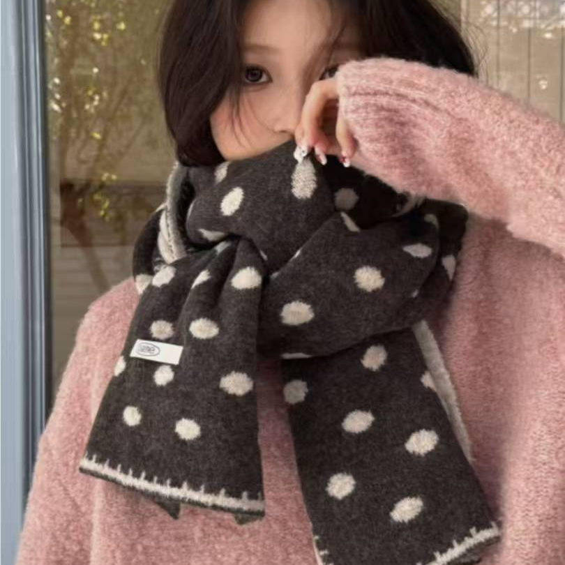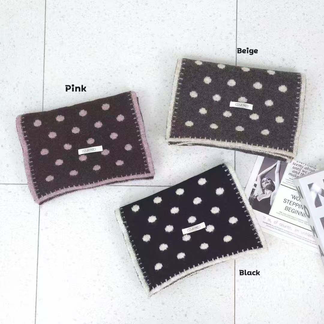 10.30韩国直播EBADA纯色波点花边围巾新款冬季保暖羊毛