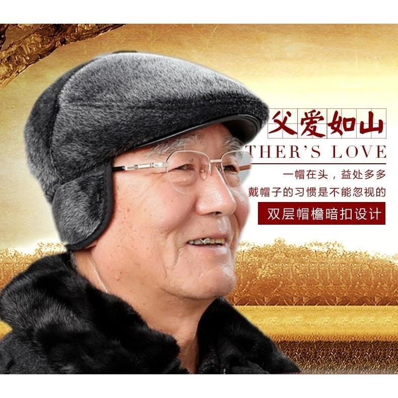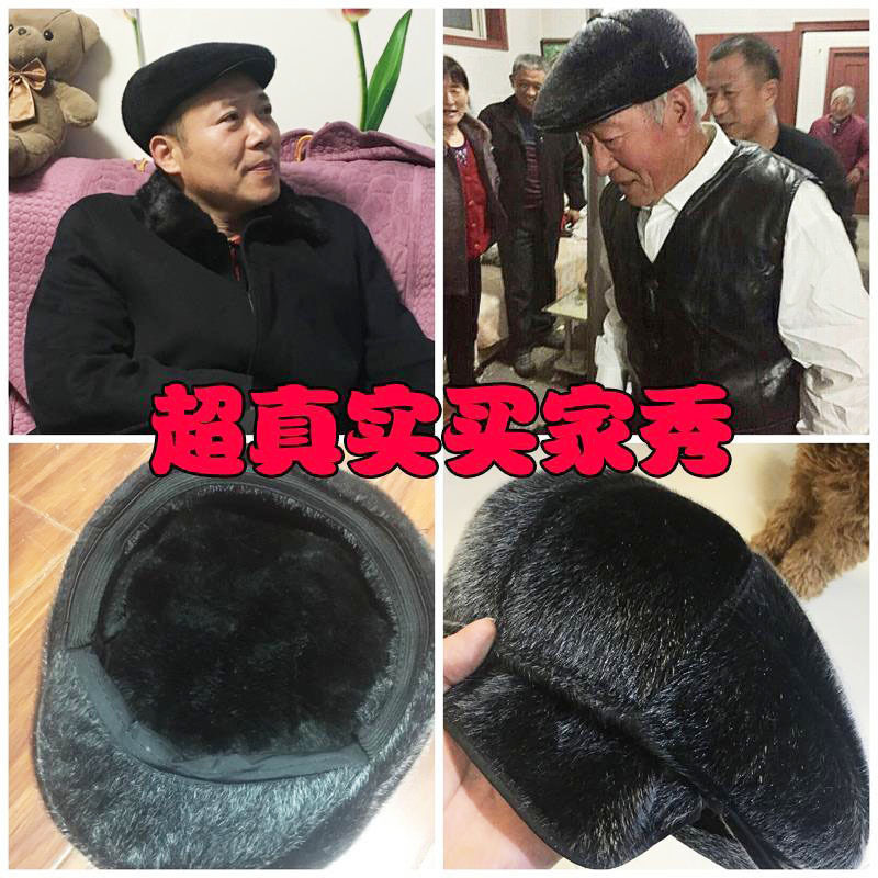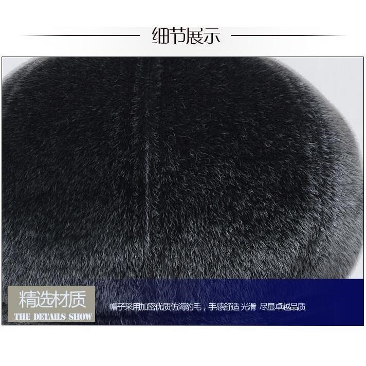 老年人帽子仿水貂毛中老年男士秋冬鸭舌帽前进帽保暖帽防寒护耳