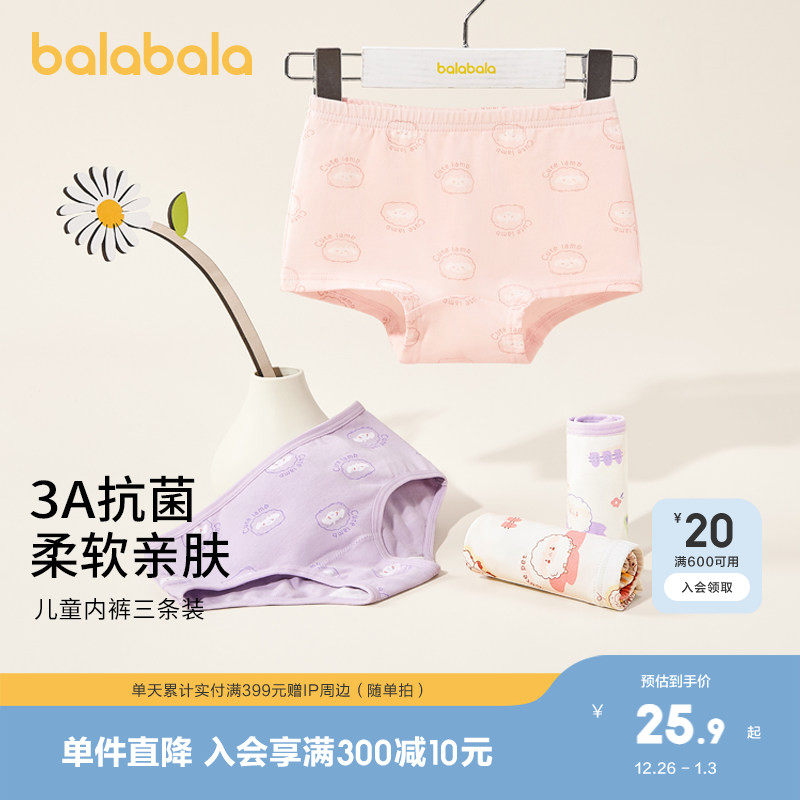 巴拉巴拉女童内裤儿童三角短裤小大童宝宝不夹PP抗菌萌三条装舒适