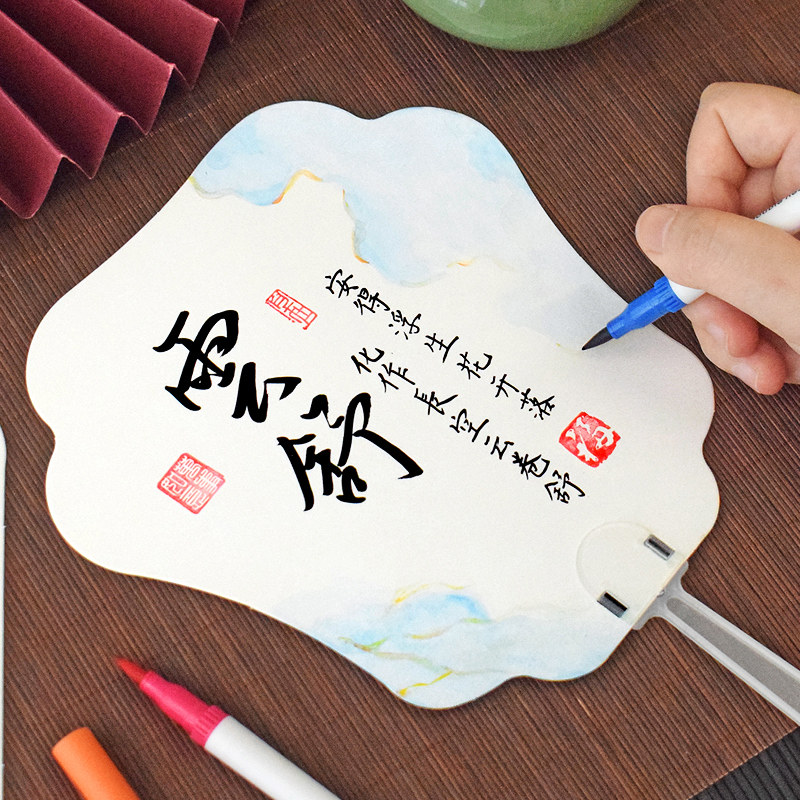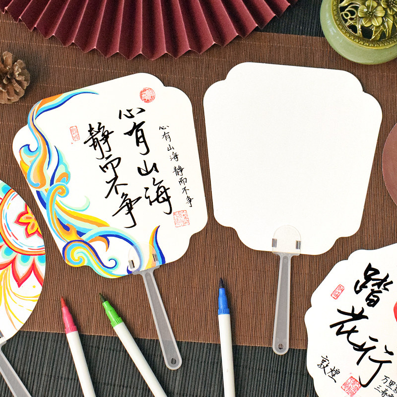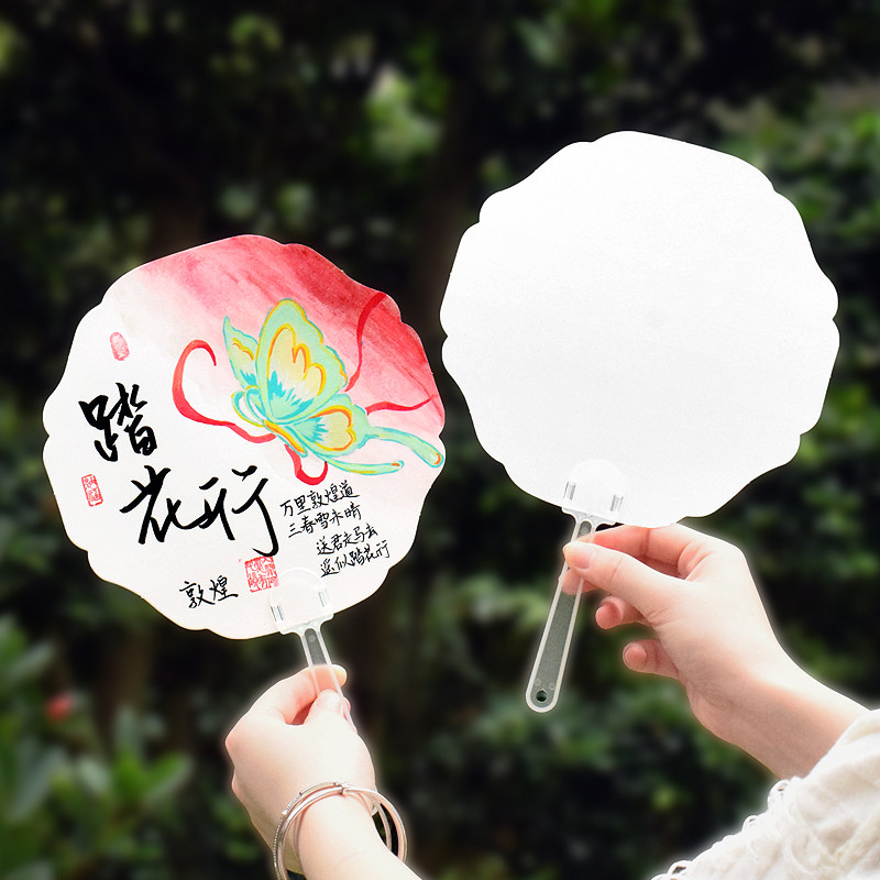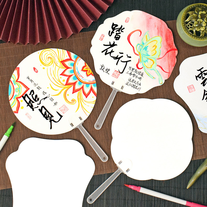 空白纯白色手工diy扇子填色贺卡美术生高阶绘画制作团扇卡片纸材料包学生手绘自制蒲扇宫扇涂鸦ins礼物可定制
