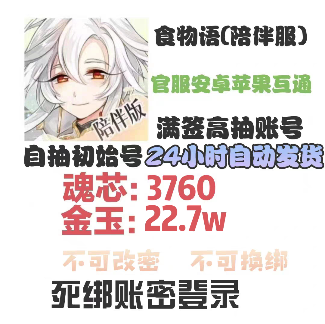 食物语陪伴版初始号开局号自抽号官服安卓苹果ios互通(自动发货)