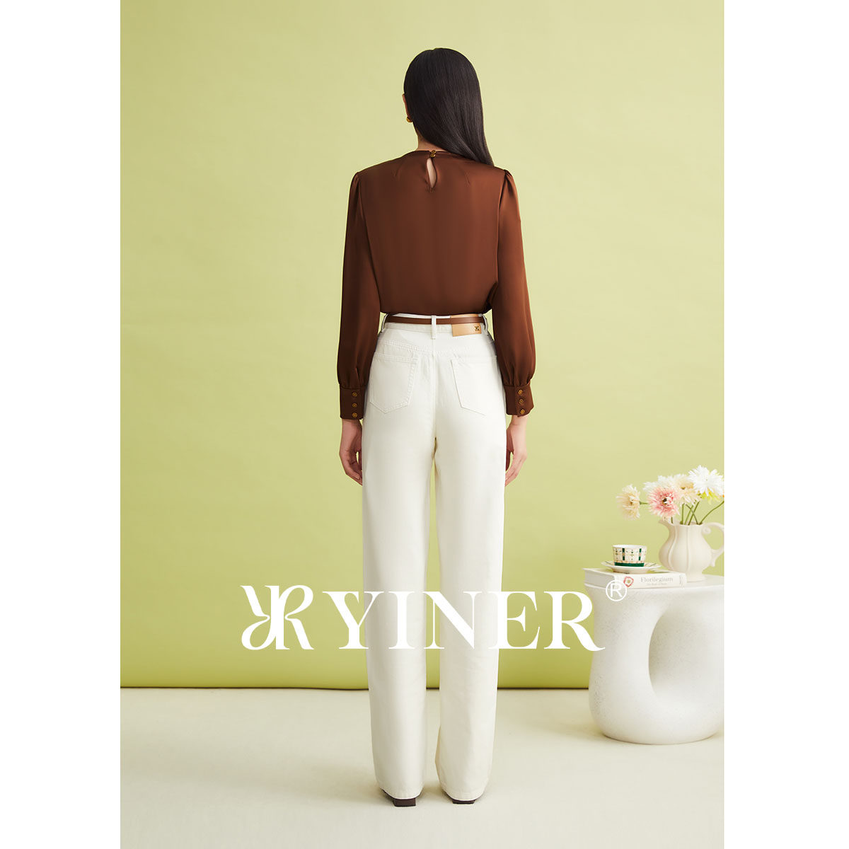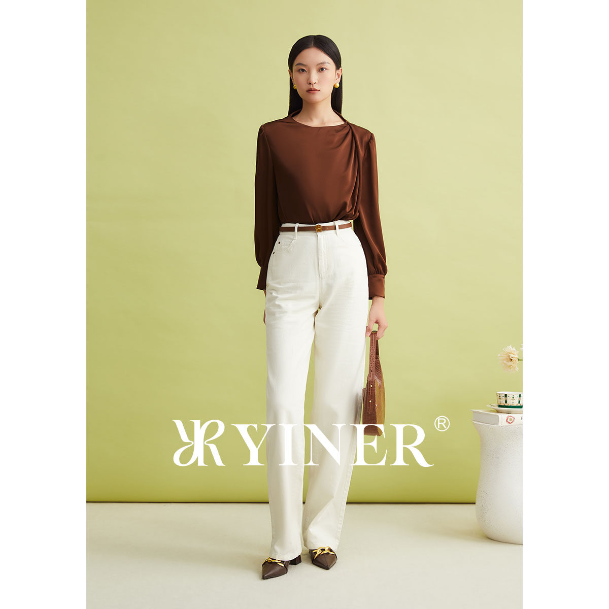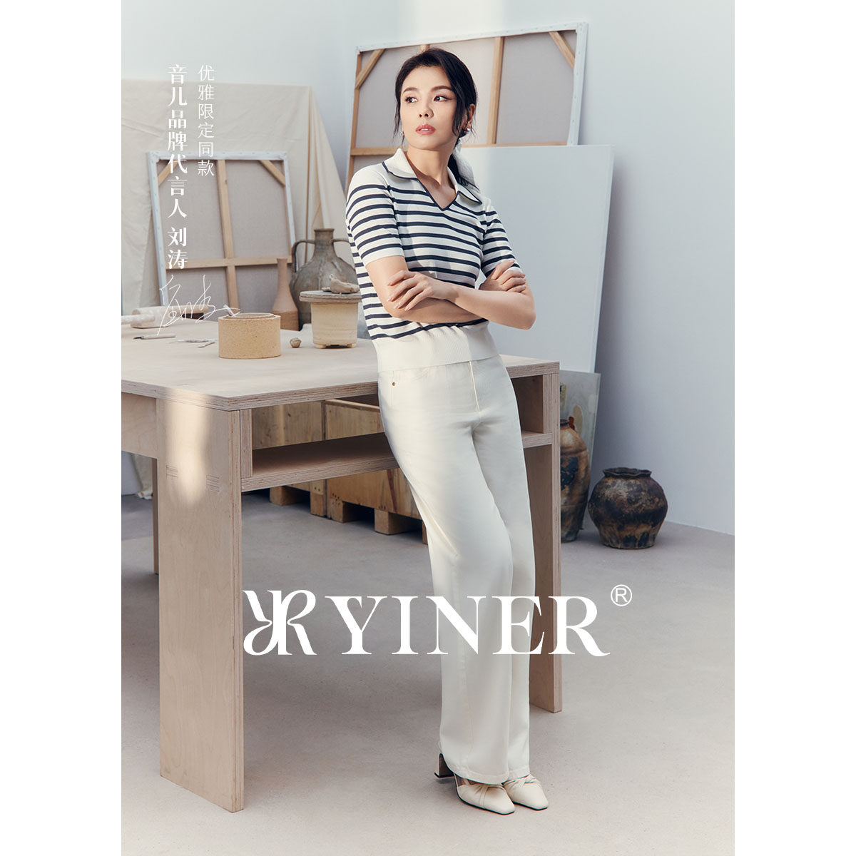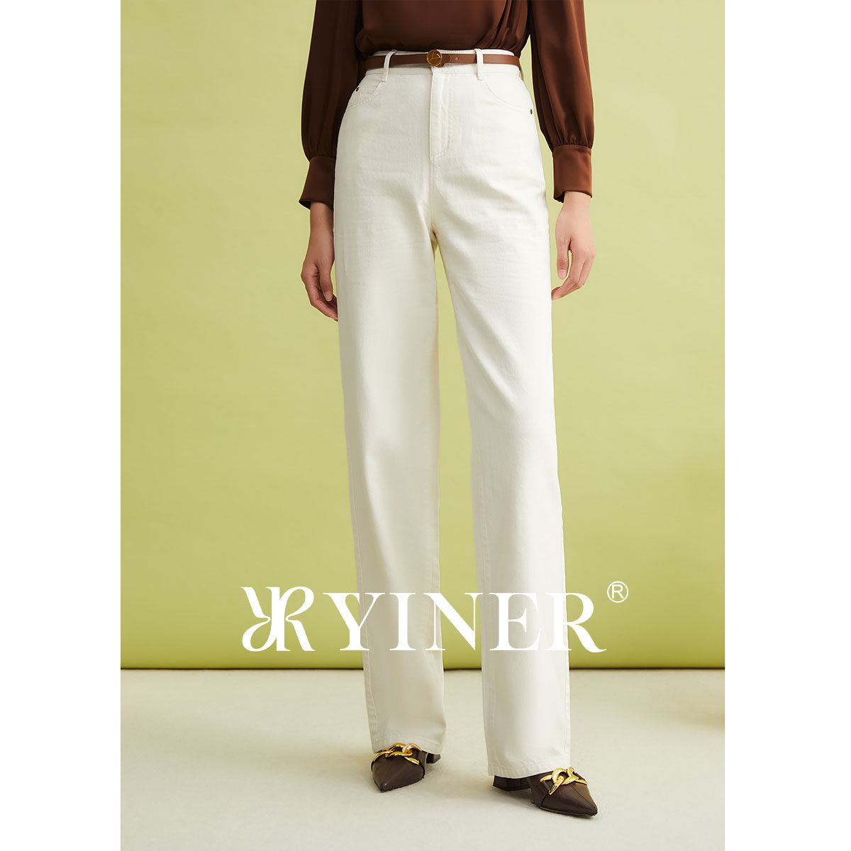 【刘涛同款】YINER音儿春季米白色直筒长裤汉麻牛仔裤