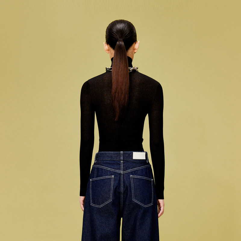 LESS高领打底针织衫女系带设计感薄款休闲修身内搭上衣2O1310760