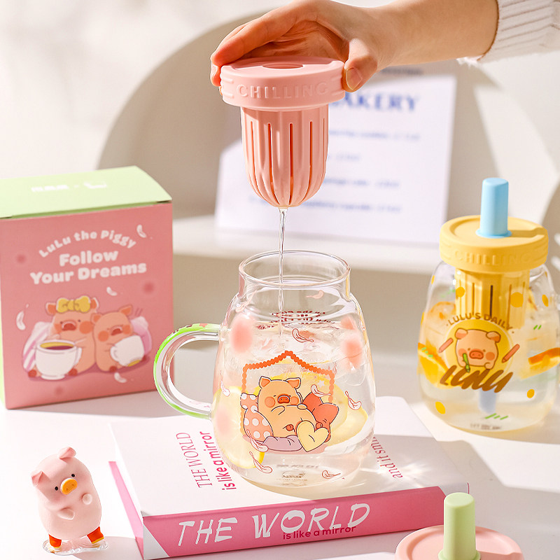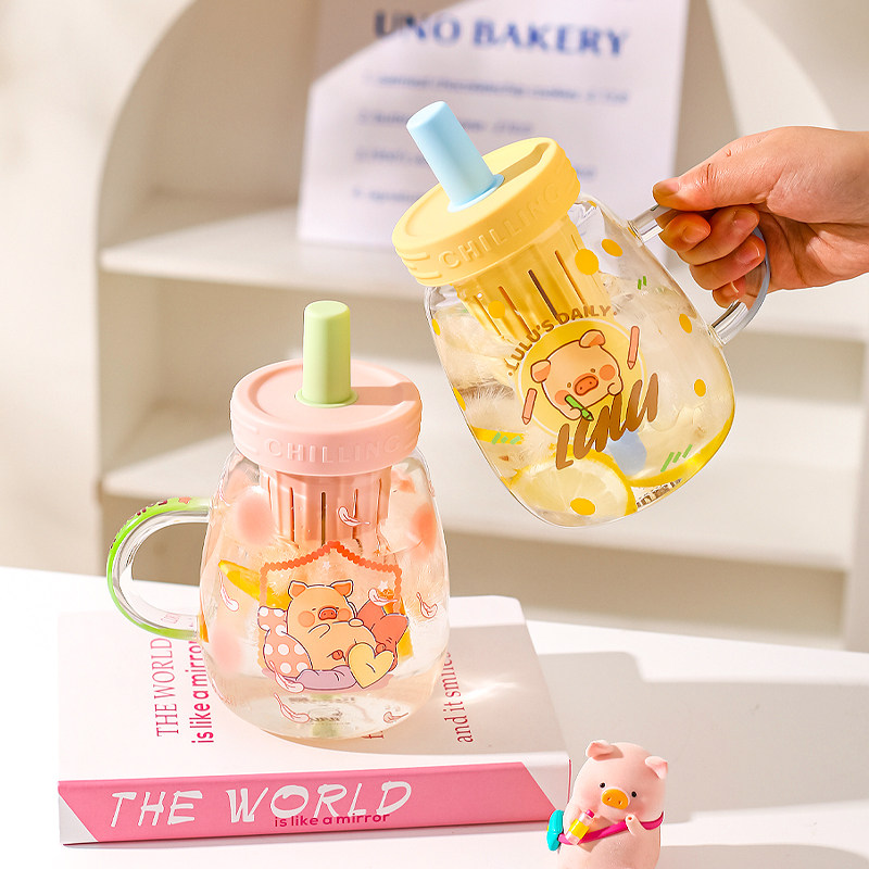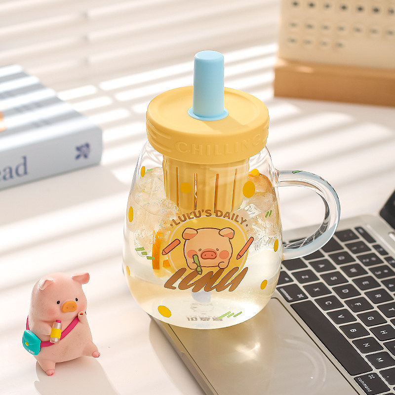 川岛屋&lulu猪联名 玻璃水杯夏天女高颜值吸管杯子茶水分离泡茶杯