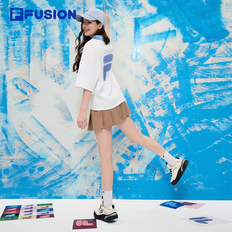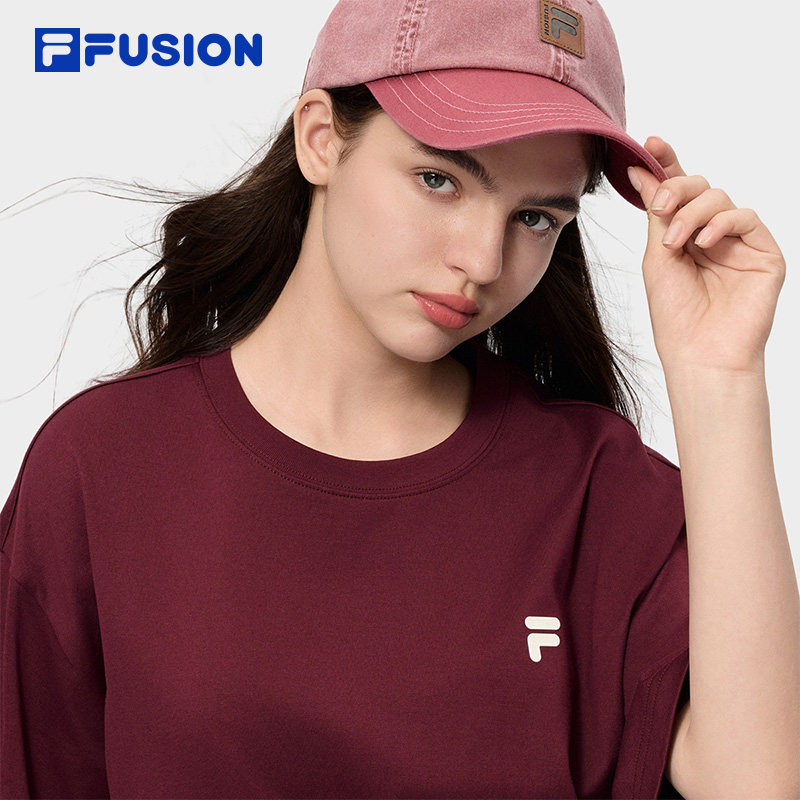 FILA FUSION斐乐潮牌短袖T恤女2026春季新款新年红色纯棉男子上衣