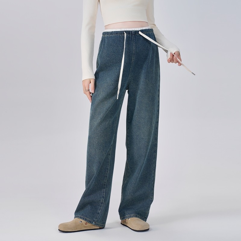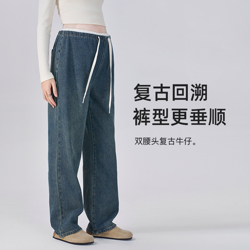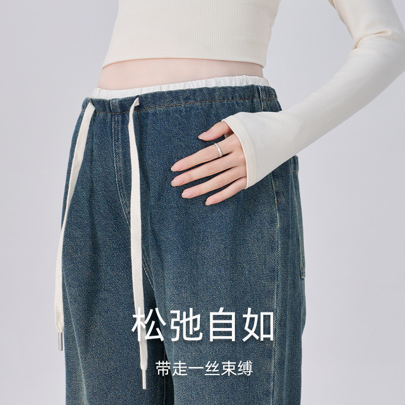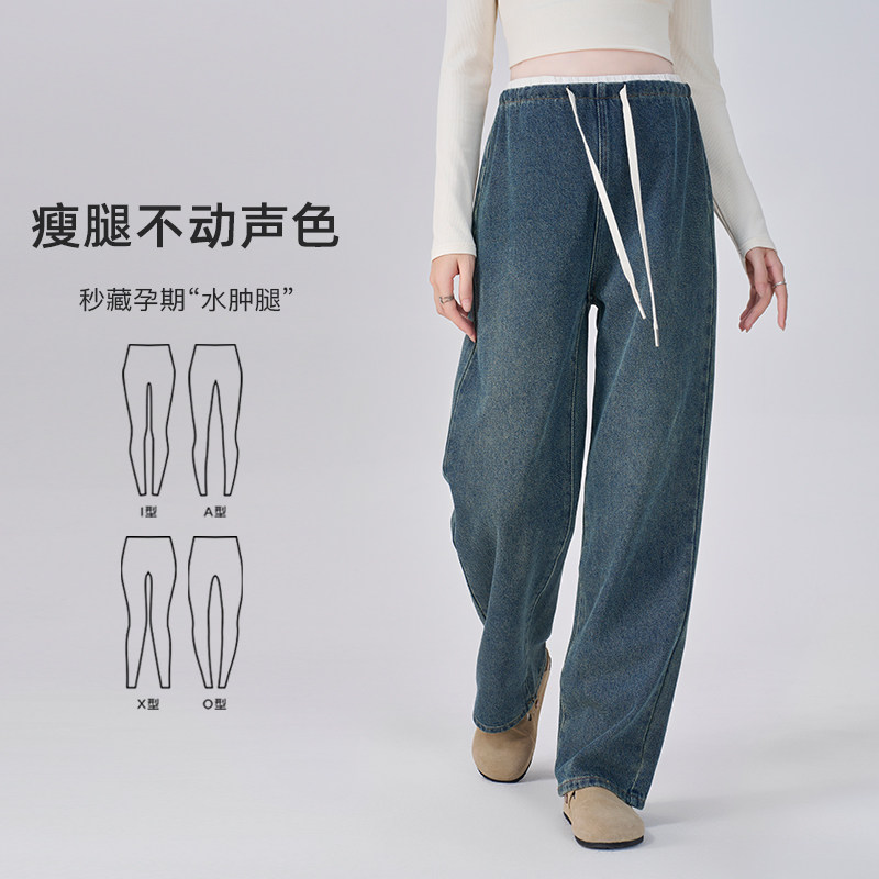 孕妇裤秋冬季外穿2025新款秋冬长裤不勒肚子宽松阔腿牛仔裤子冬装
