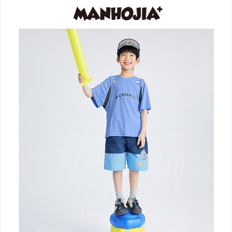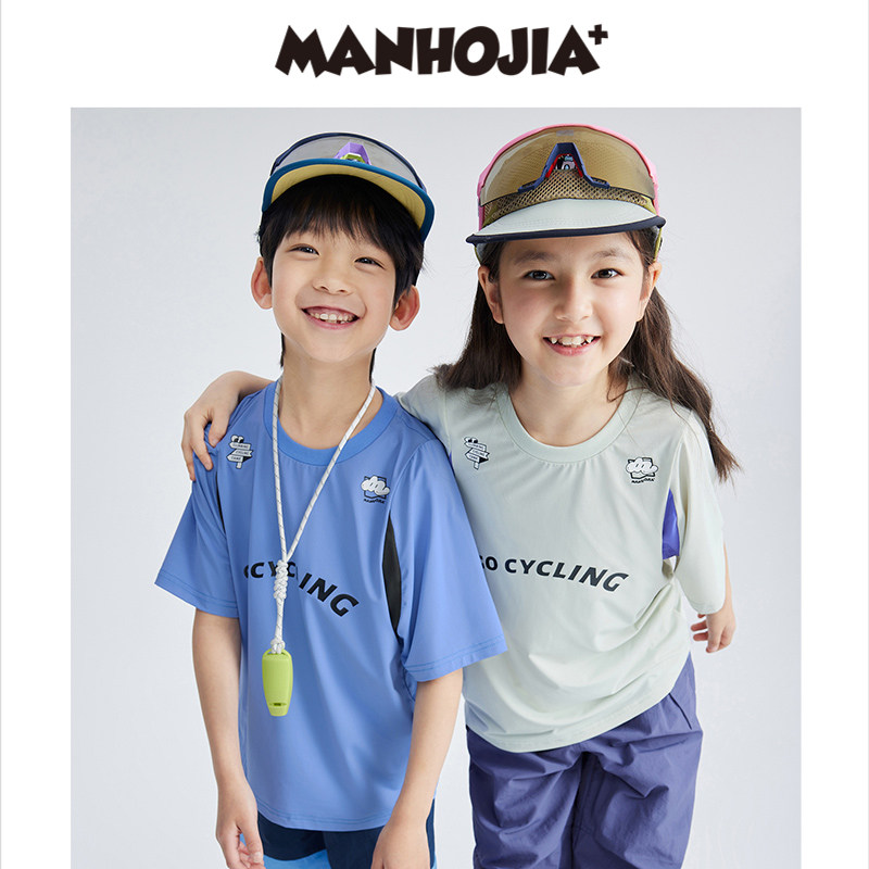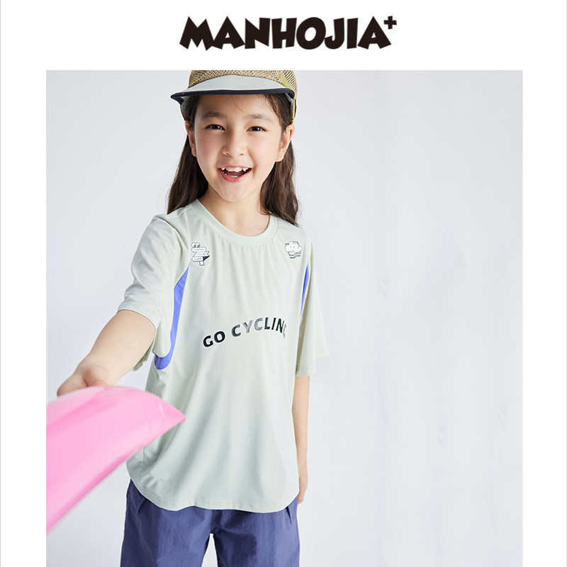 t恤漫画家潮童装快干高弹瞬凉网眼轻运动短袖男童女童儿童夏装