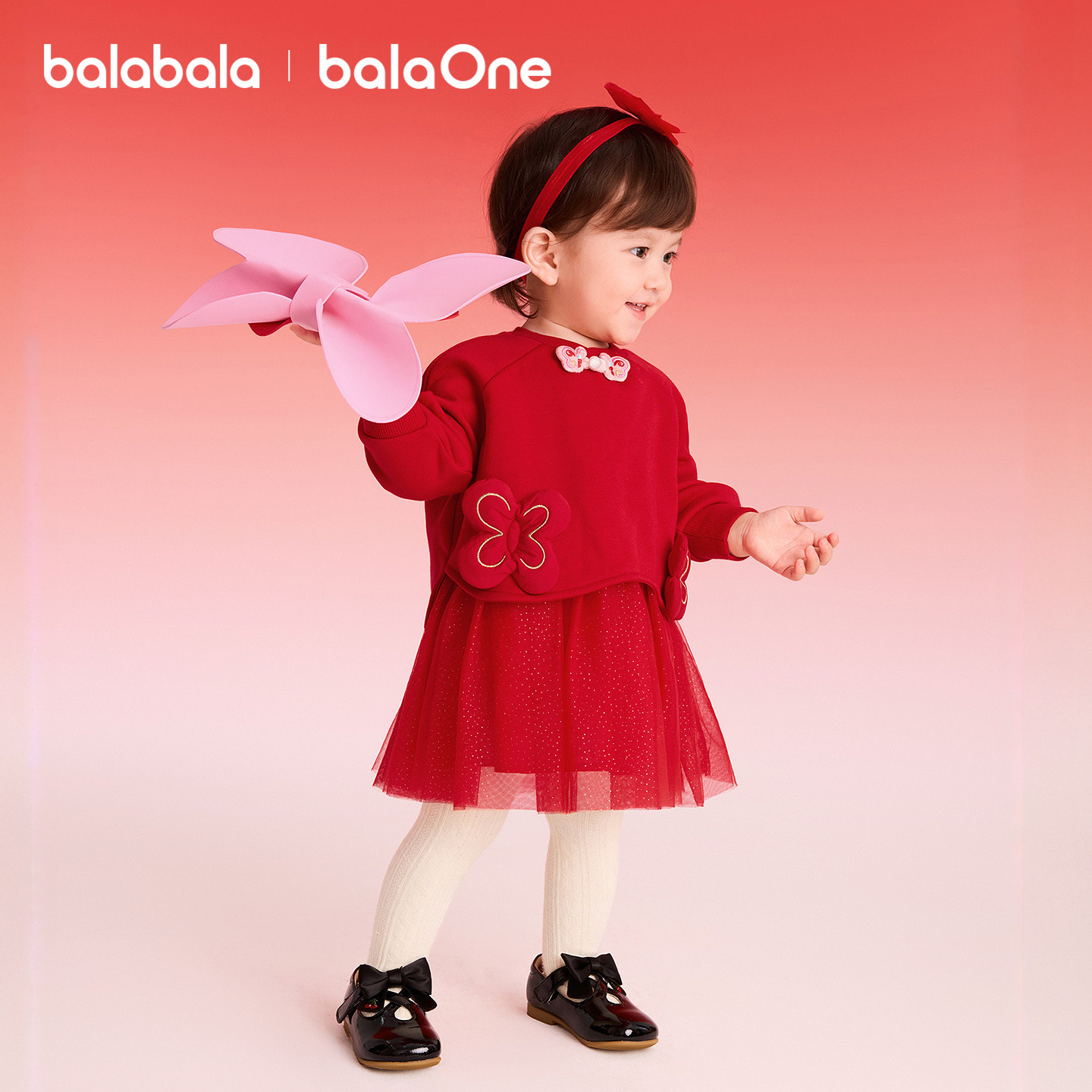 巴拉巴拉童装女童连衣裙子新中式2025新秋冬装红色拜年服宝宝网纱