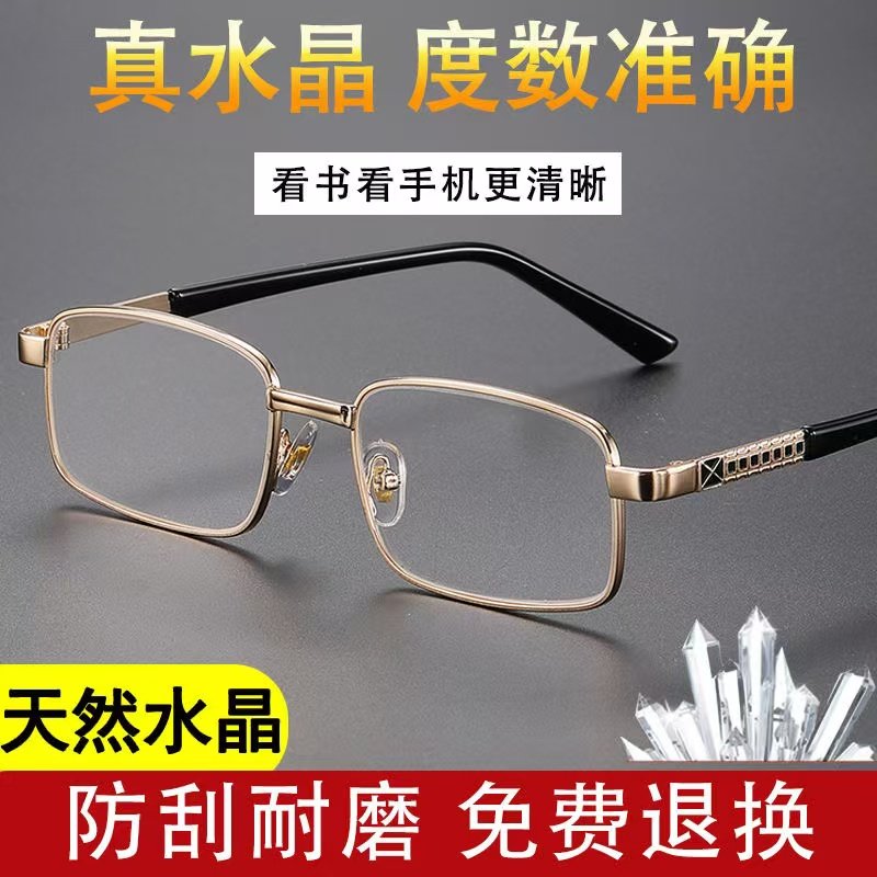 高档水晶老花眼镜男女士中老年正品高清防蓝光折叠老人老光镜玻璃