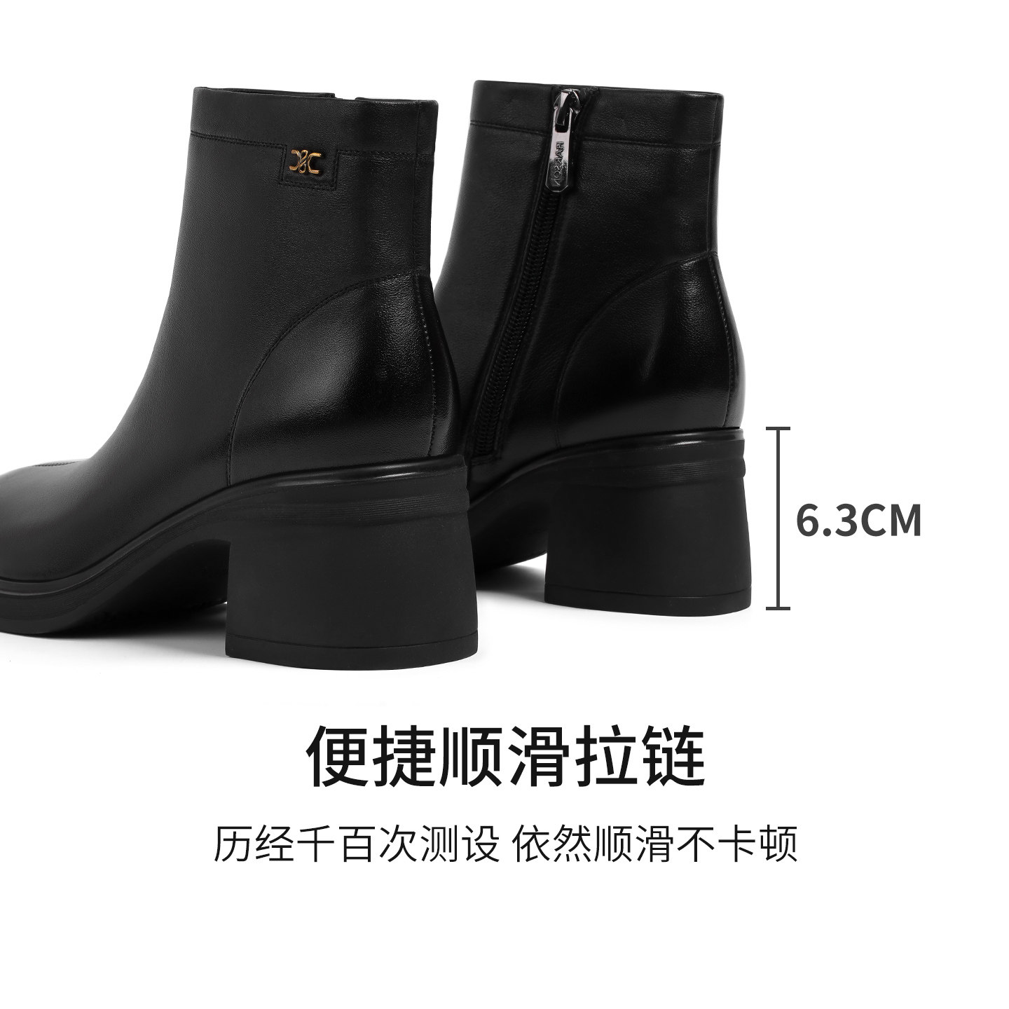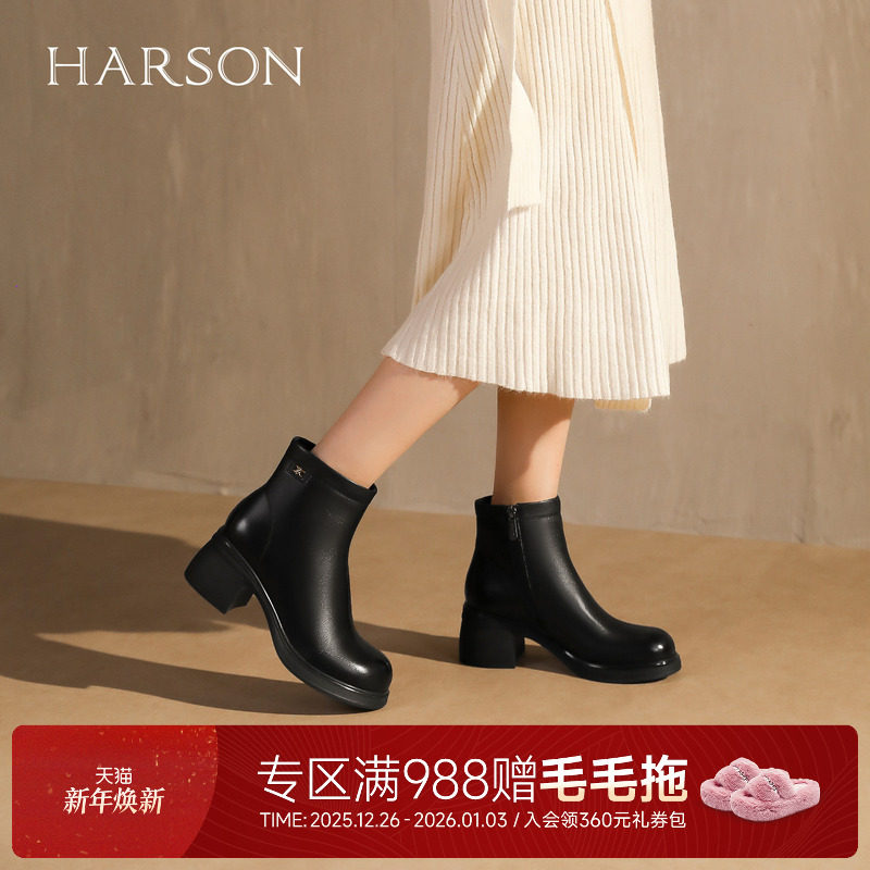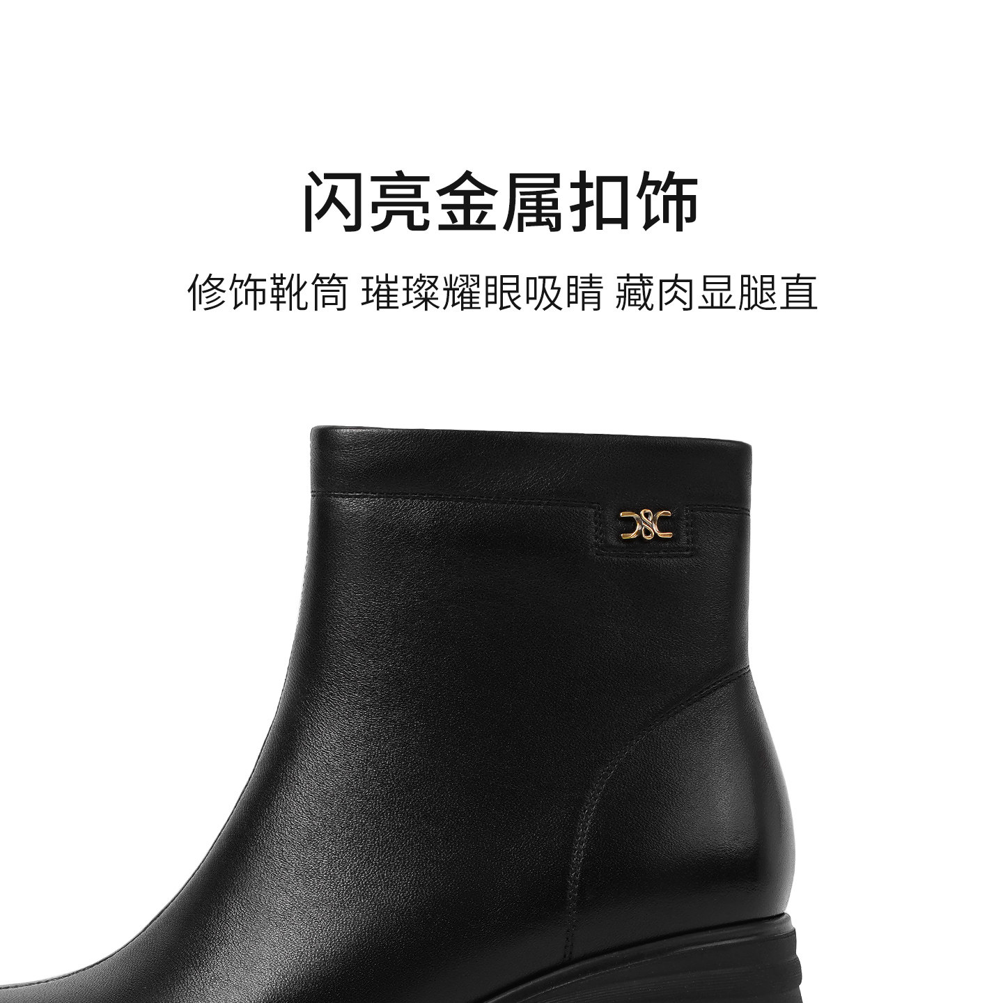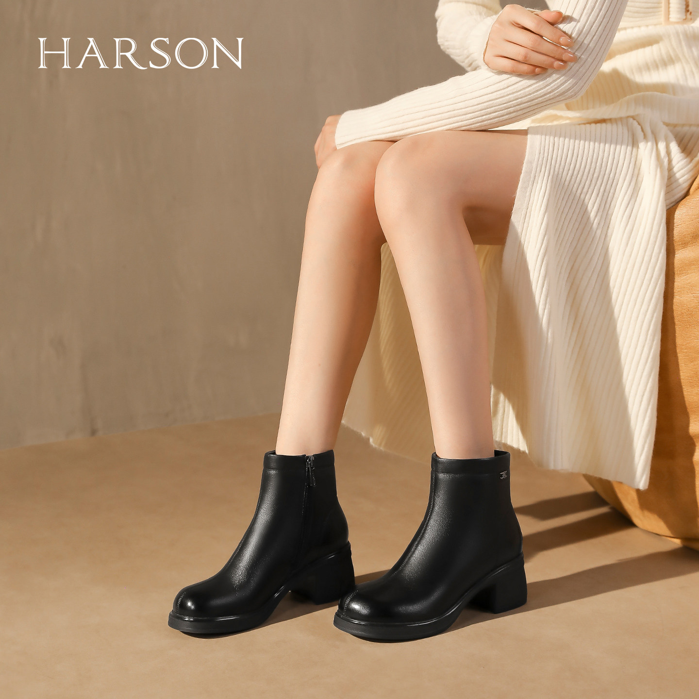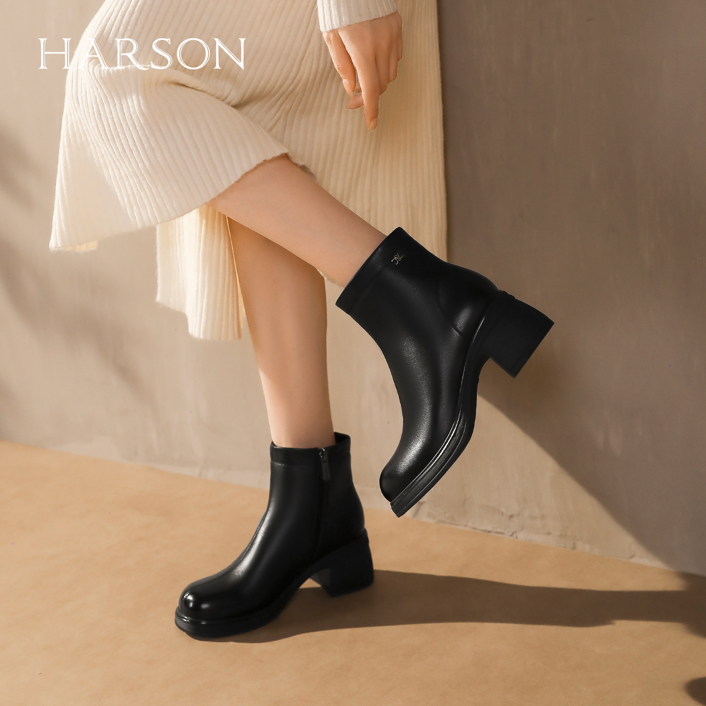 哈森时尚粗高跟百搭通勤厚底增高时装靴女短靴2025冬新品HA254108