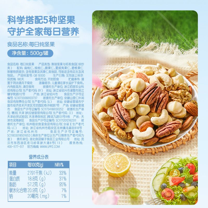 良品铺子罐装每日坚果500g混合坚果纯坚果干果开心果核桃健康零食
