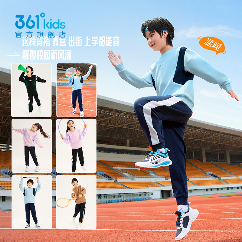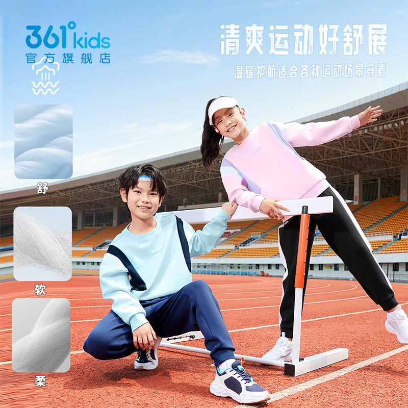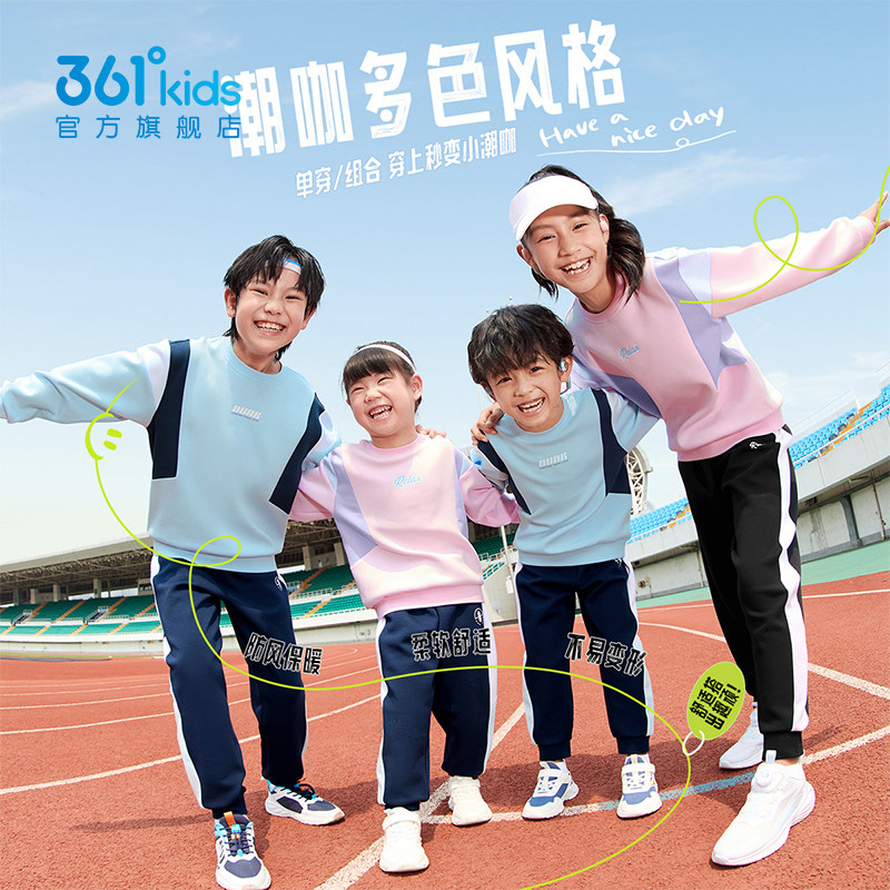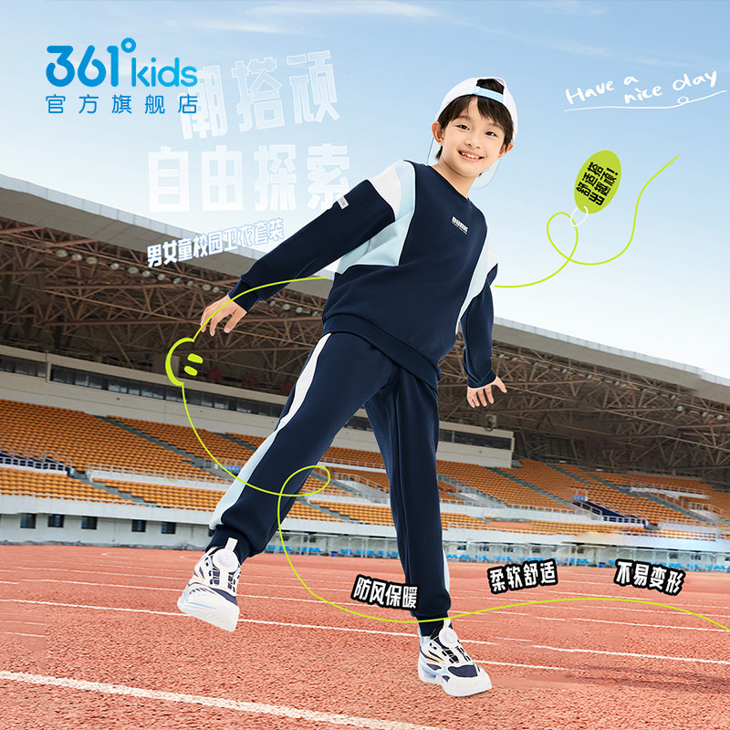 361°童装男女童针织套装2025春秋新款中大童卫衣长裤运动套装