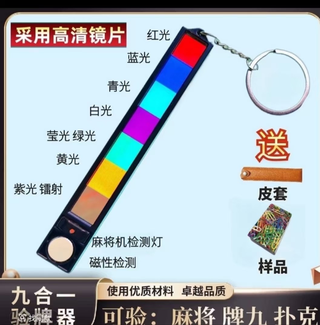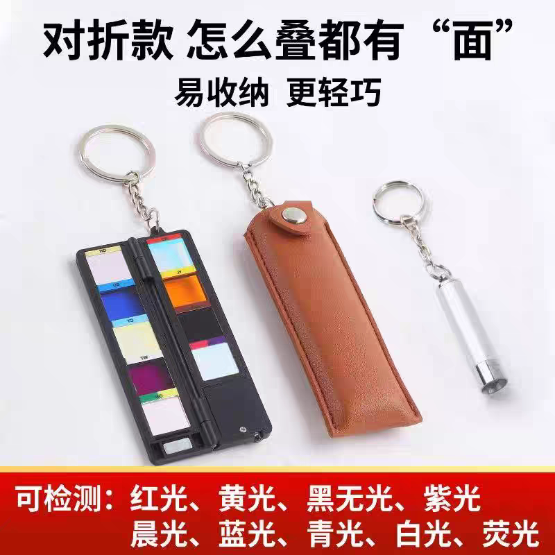 新款九合一检测镜片钥匙扣白光青光紫光检测红光检测镜片