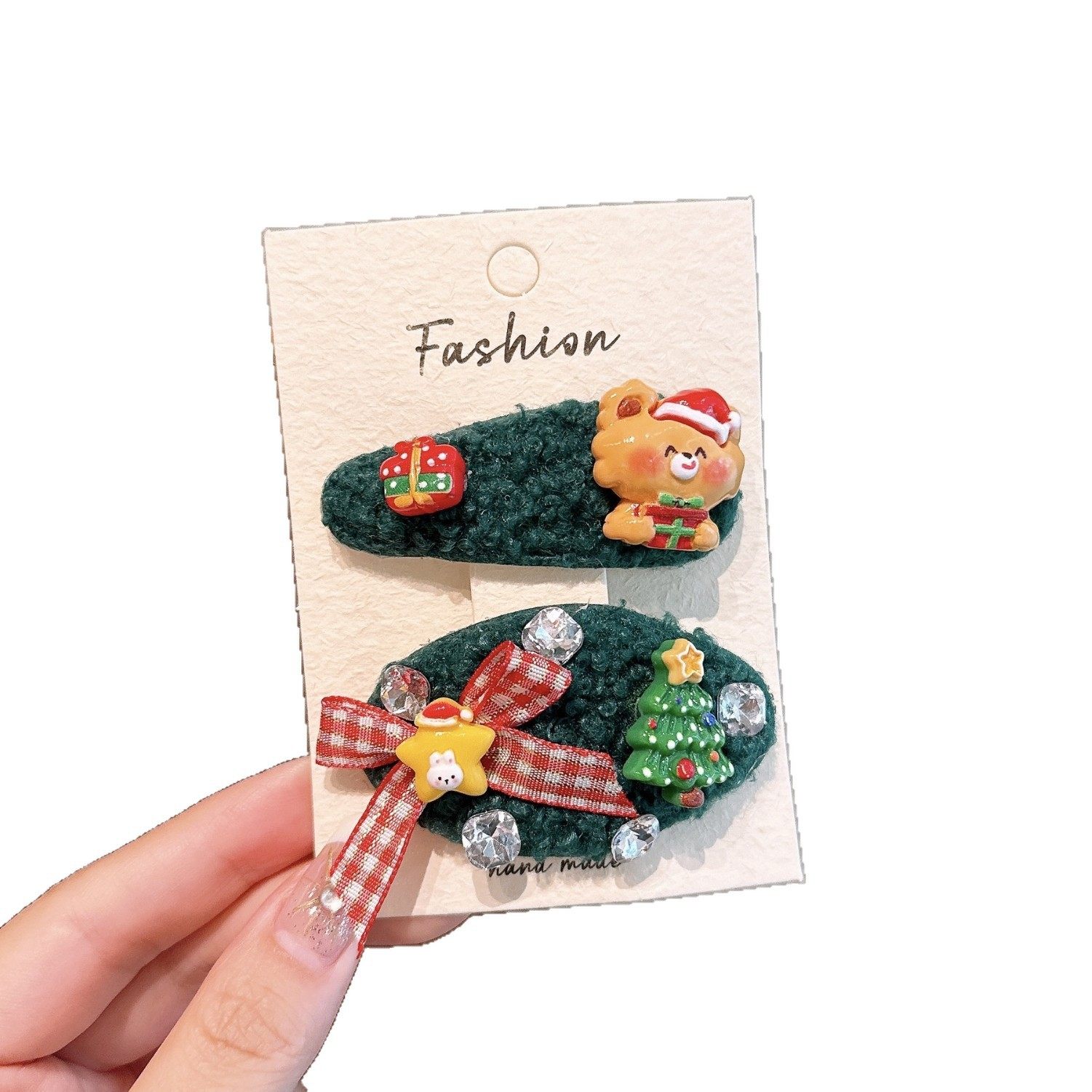 圣诞发夹女2025新款刘海夹儿童发圈大号鸭嘴夹秋冬毛绒盘发头饰