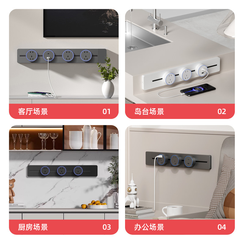 可移动轨道插座家用餐边柜免打孔厨房电力滑轨插座电源拓展排插