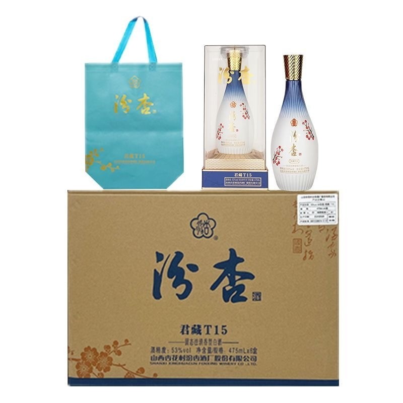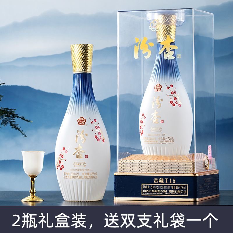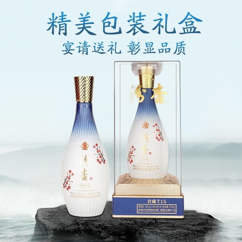 汾杏君藏T15清香型53度白酒整箱6瓶纯粮食过节日送礼盒装淡雅发酵