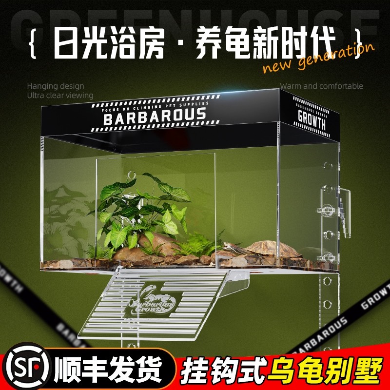 乌龟阳光房晒背爬台专用高水位生态缸造景晒背台双层养龟挂式