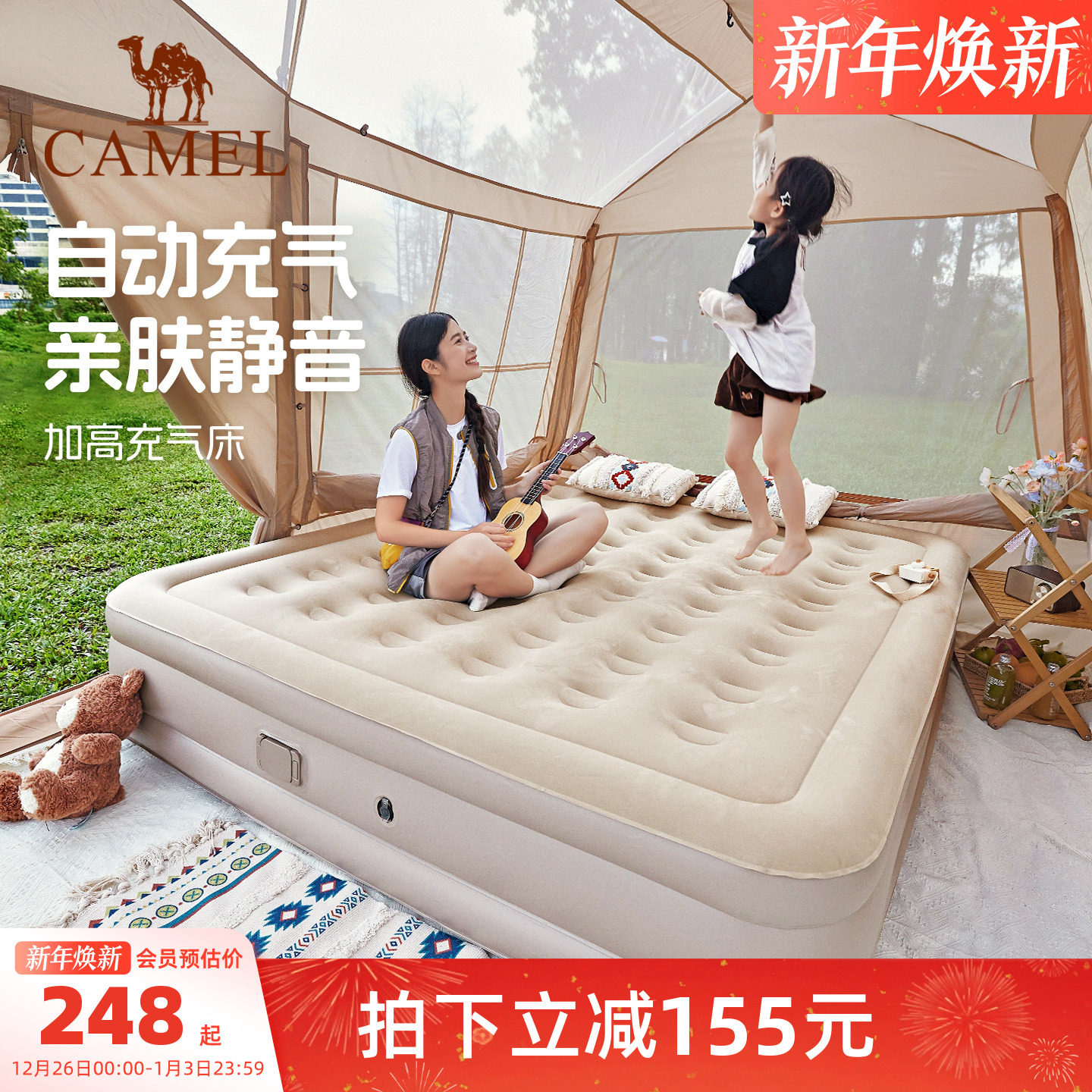 骆驼户外露营防潮气垫床打地铺睡垫自动充气床垫便携家用充气沙发