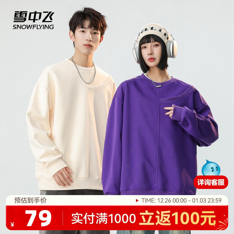 雪中飞2025春秋新款男女情侣款休闲圆领卫衣设计潮流纯色百搭青年