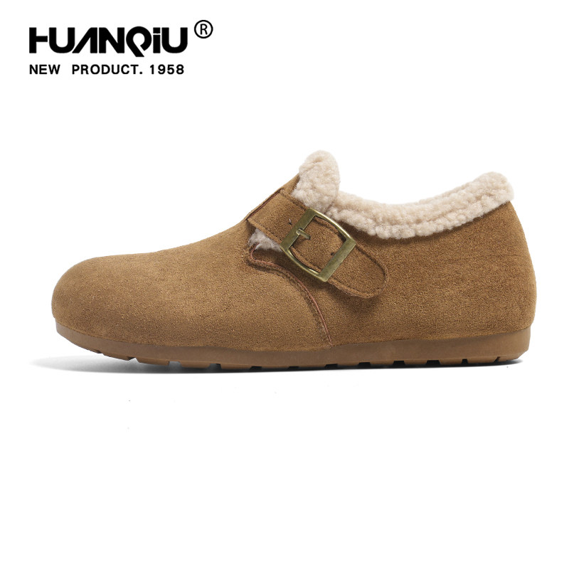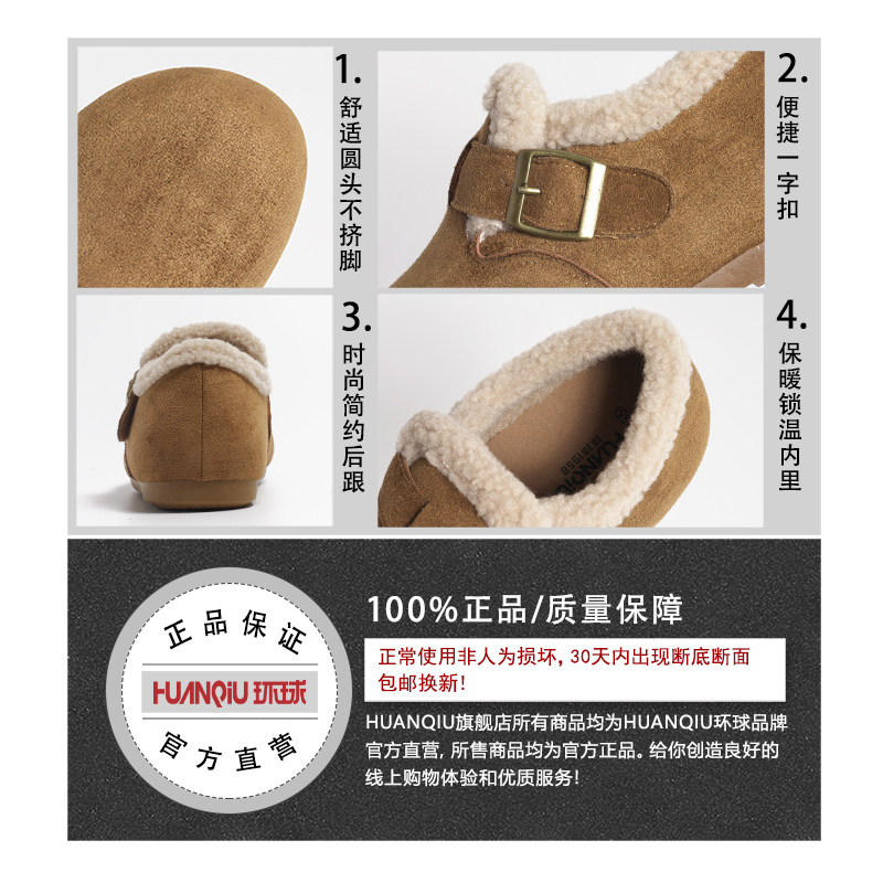 环球保暖加绒毛毛扣带勃肯雪地靴女款2026新款冬季舒适一脚蹬棉鞋