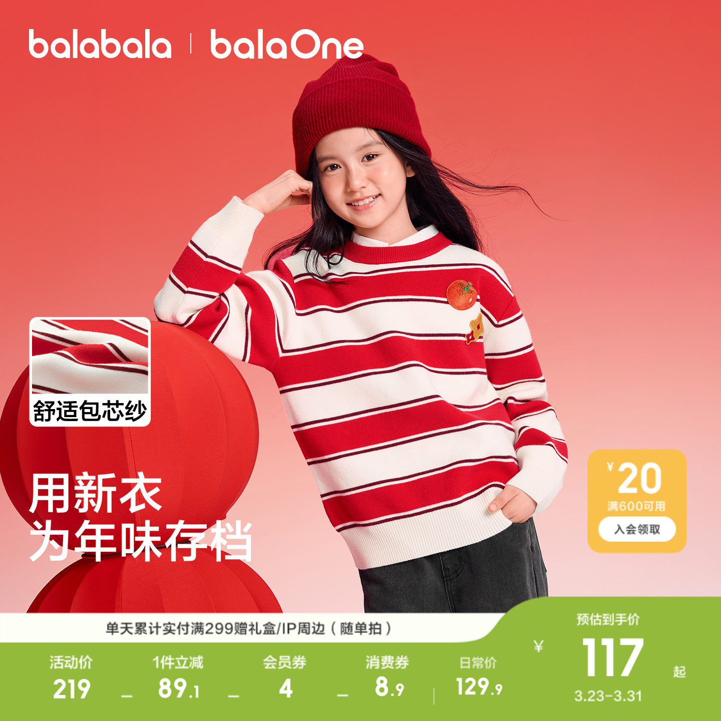 巴拉巴拉童装儿童毛衣男女童2026新款秋冬装条纹针织衫内搭红色