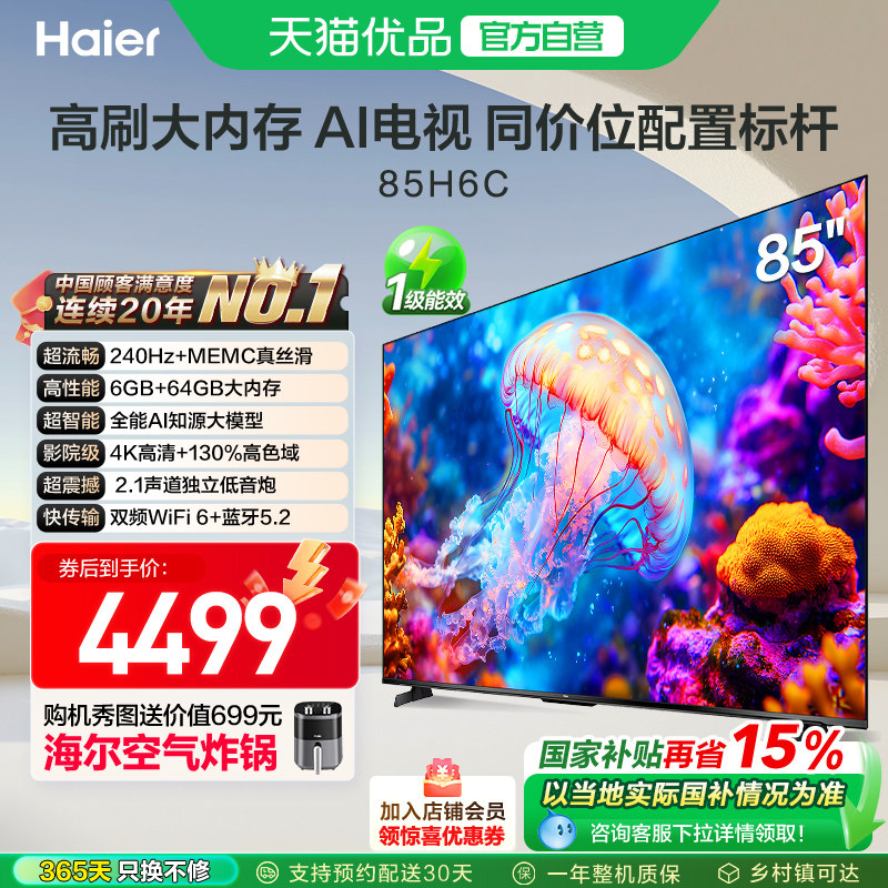 海尔电视85H6C 85英寸240Hz高刷大内存电视机 家用以旧换新补贴