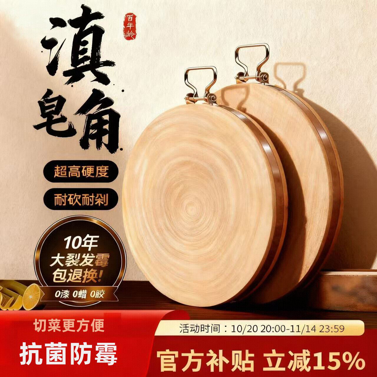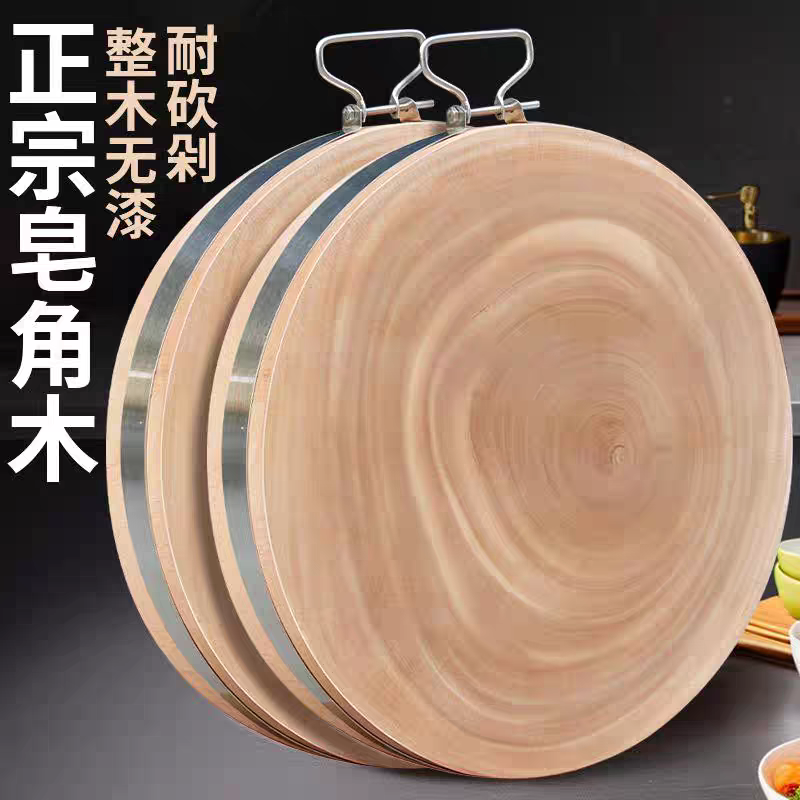 云南滇皂角木菜板家用加厚整木圆形砧板案板抗菌切菜板加大菜墩