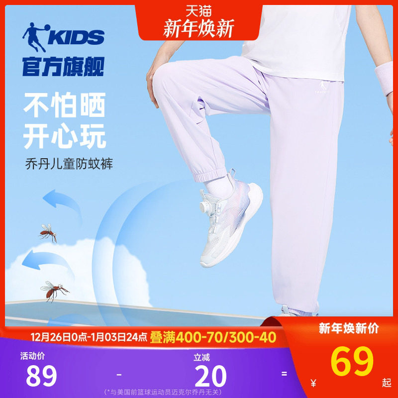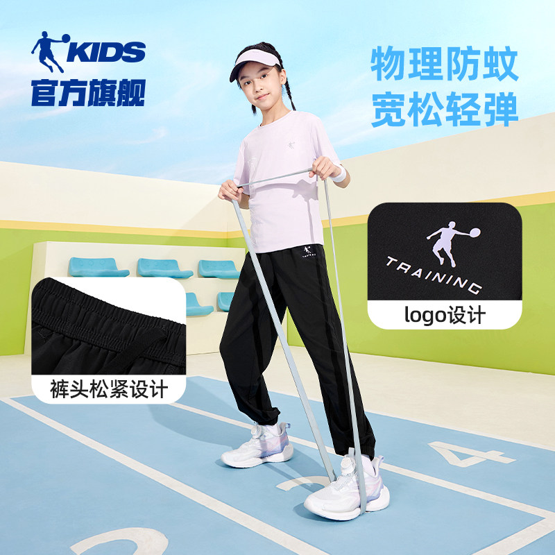 乔丹童装女童裤子防蚊裤2025夏季新款儿童运动裤薄款透气男童长裤