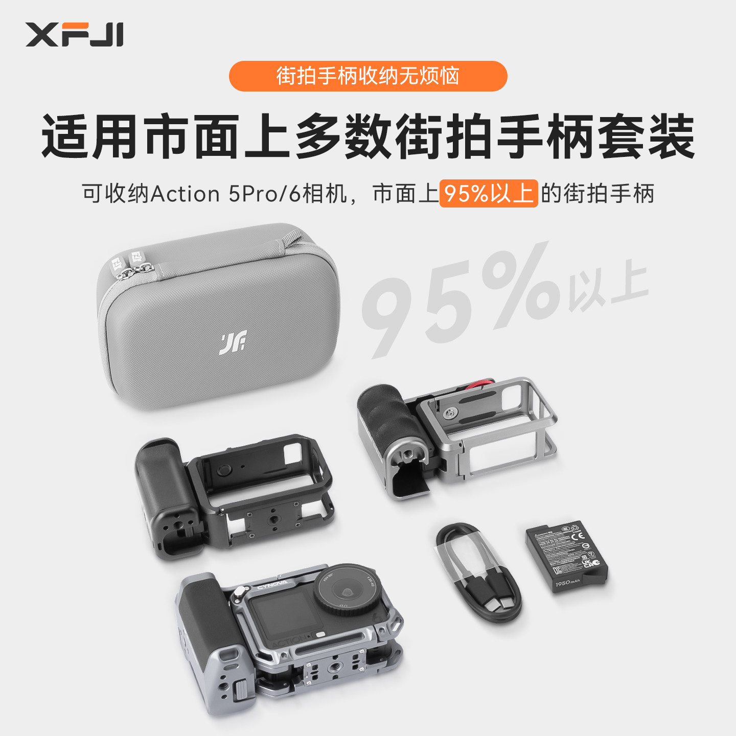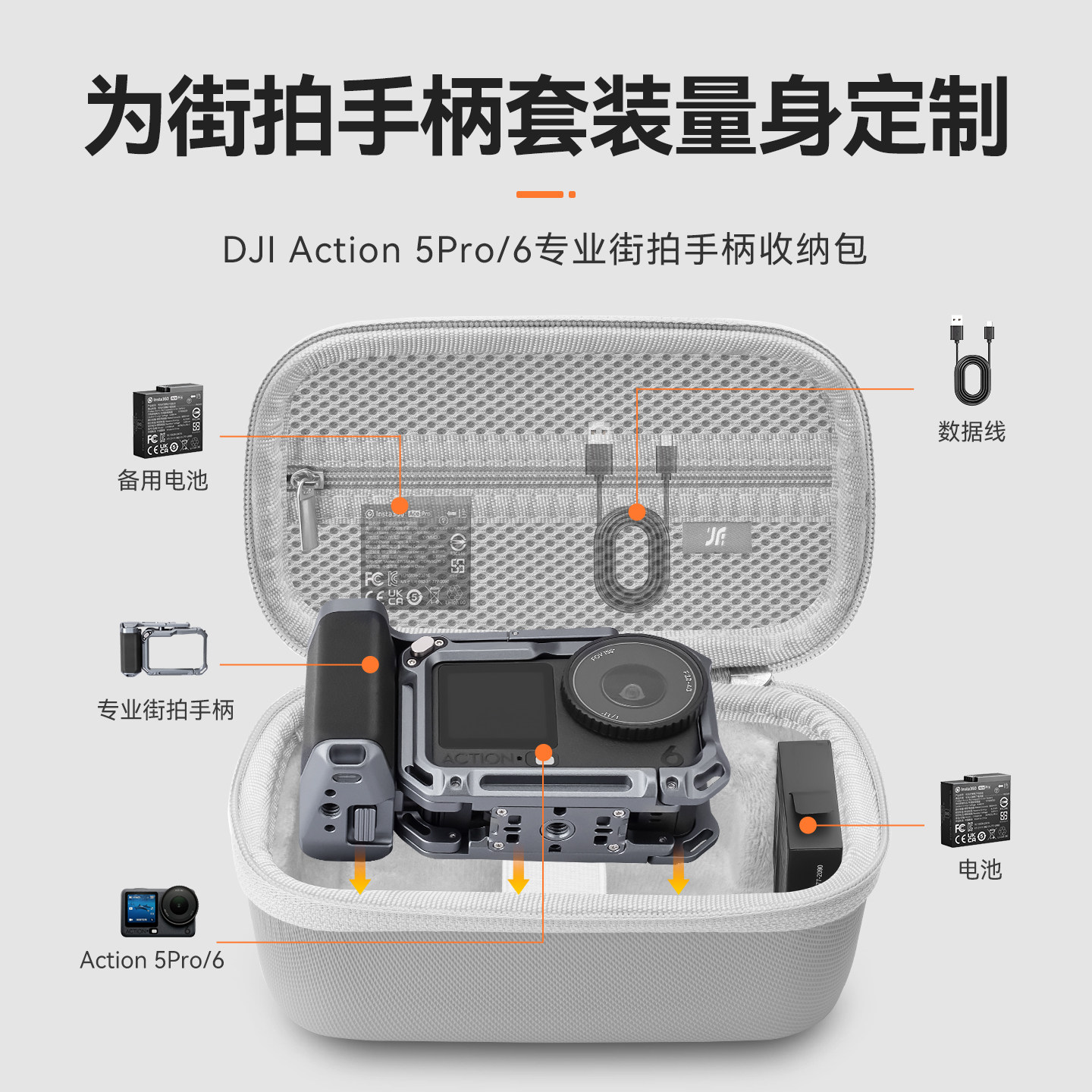 XFJI适用于DJI大疆Action6街拍手柄收纳包官方街拍手柄Action5Pro通用街拍套装收纳包运动相机配件收纳盒便携