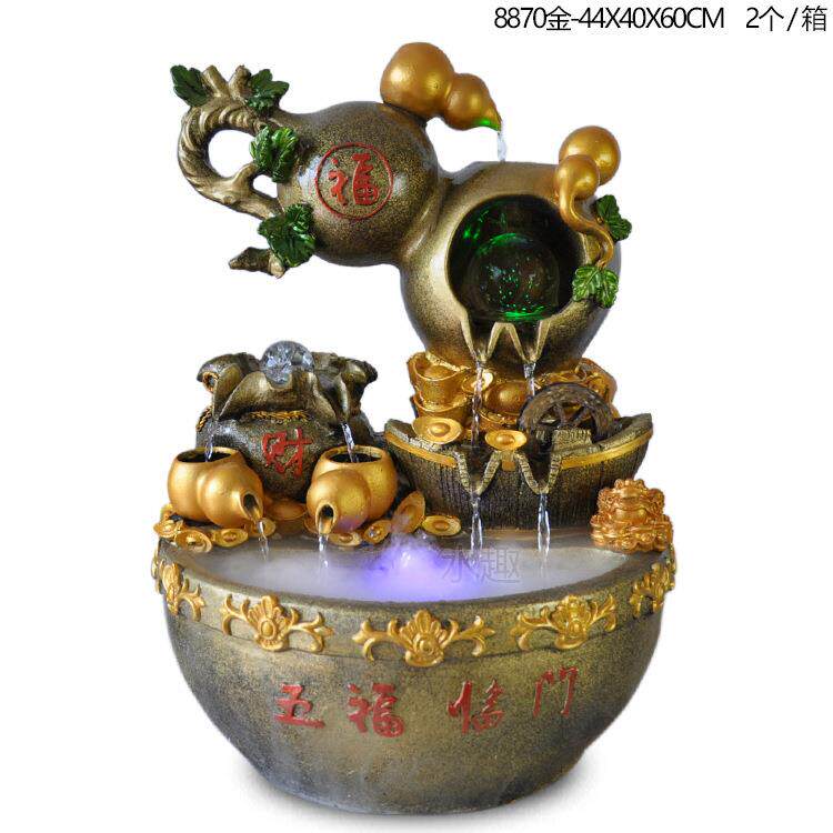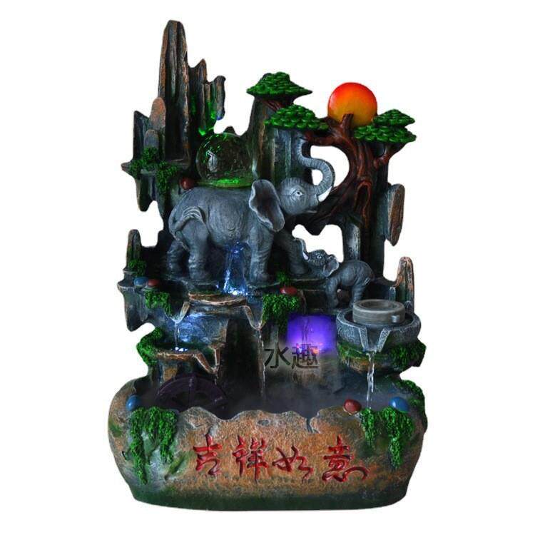 新品大号假山流水鱼缸摆件 大象树脂喷泉室内水景 义乌树脂工艺品