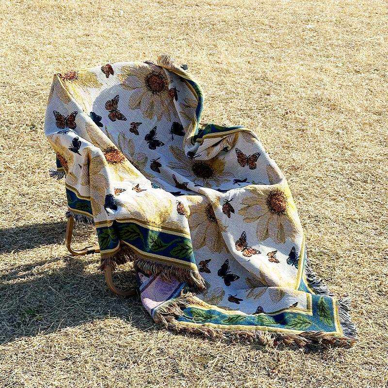 澳洲花卉露营沙发多功能盖毯花卉四季通用办公室午睡家居装饰线毯