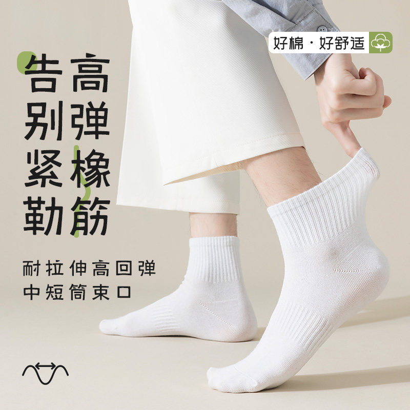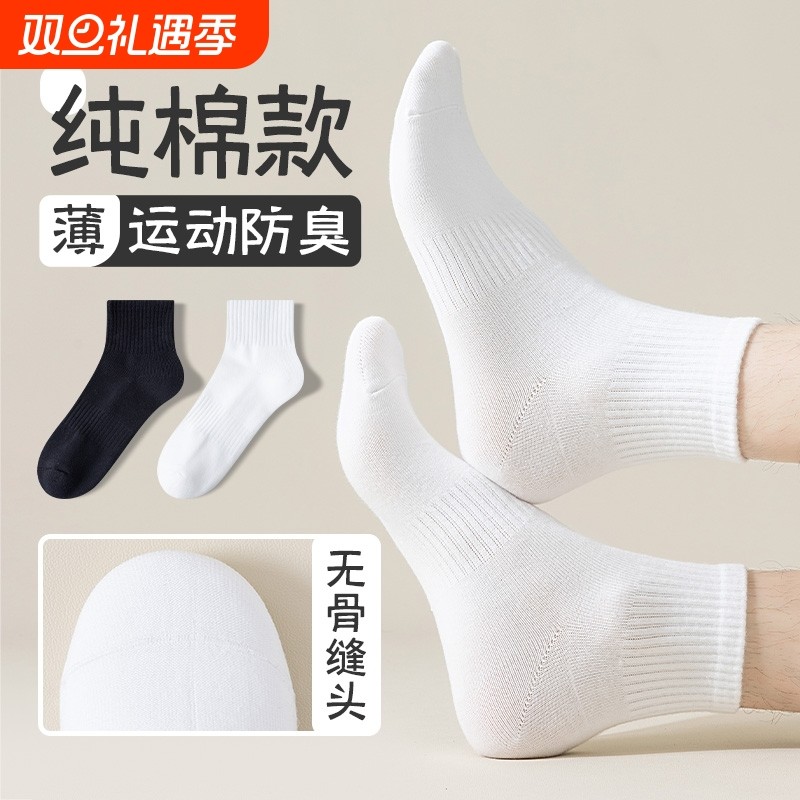 白色袜子男款中筒袜防臭薄款吸汗透气夏天黑色短筒袜纯棉不臭脚