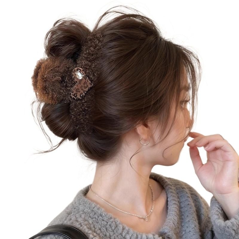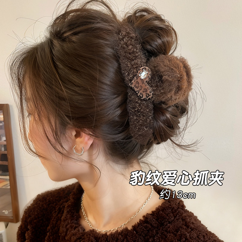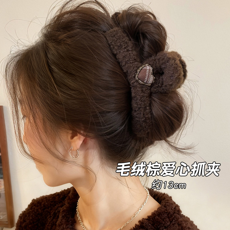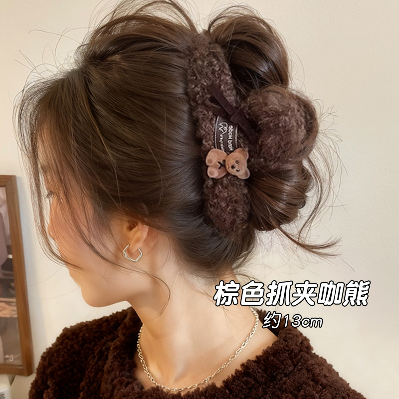 韩系毛绒小熊头发抓夹女高级感大号发量大秋冬发夹女后脑勺鲨鱼夹