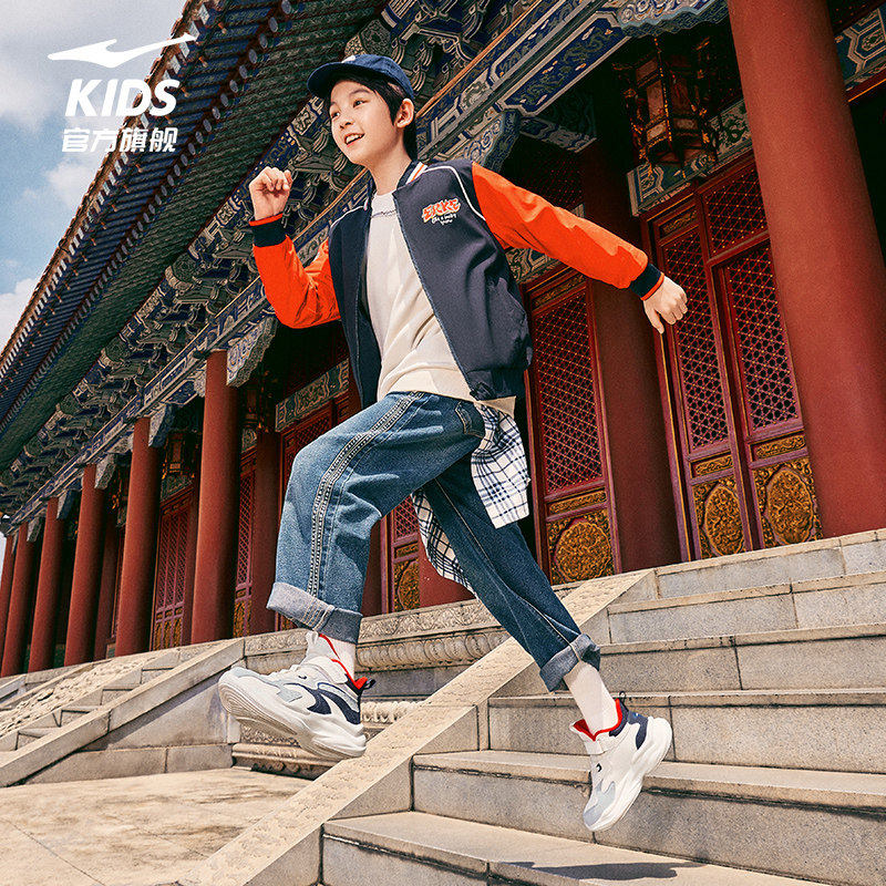 川流2|鸿星尔克童鞋男童红色秋冬运动鞋儿童旋钮新年鞋大童休闲鞋