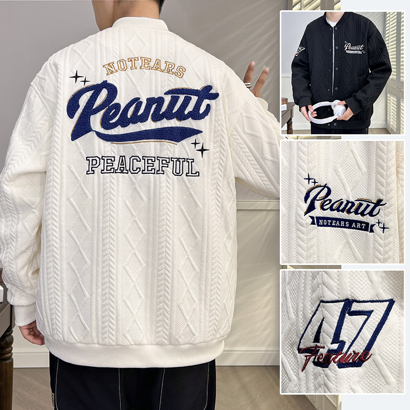 棒球服外套男款春秋季运动新款青少年夹克情侣男装上衣服休闲黑色