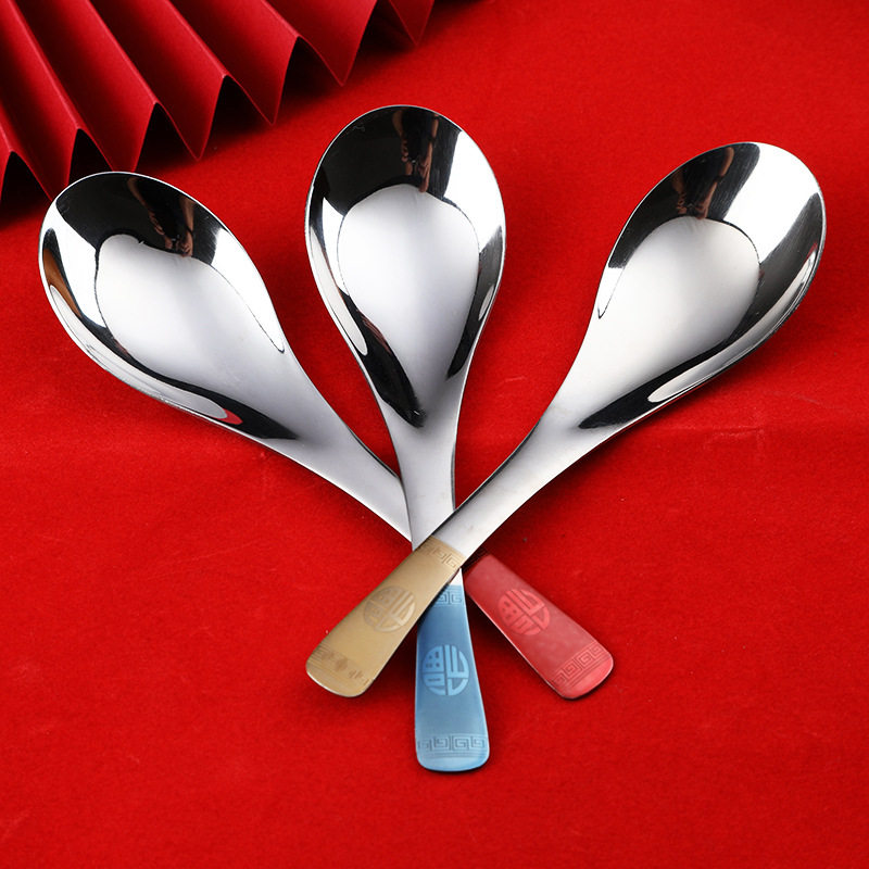 304不锈钢汤勺家用加厚调羹中式复古宫廷勺餐厅圆头勺子汤壳批发