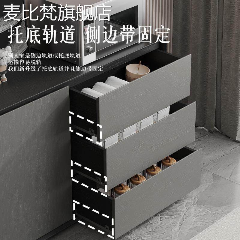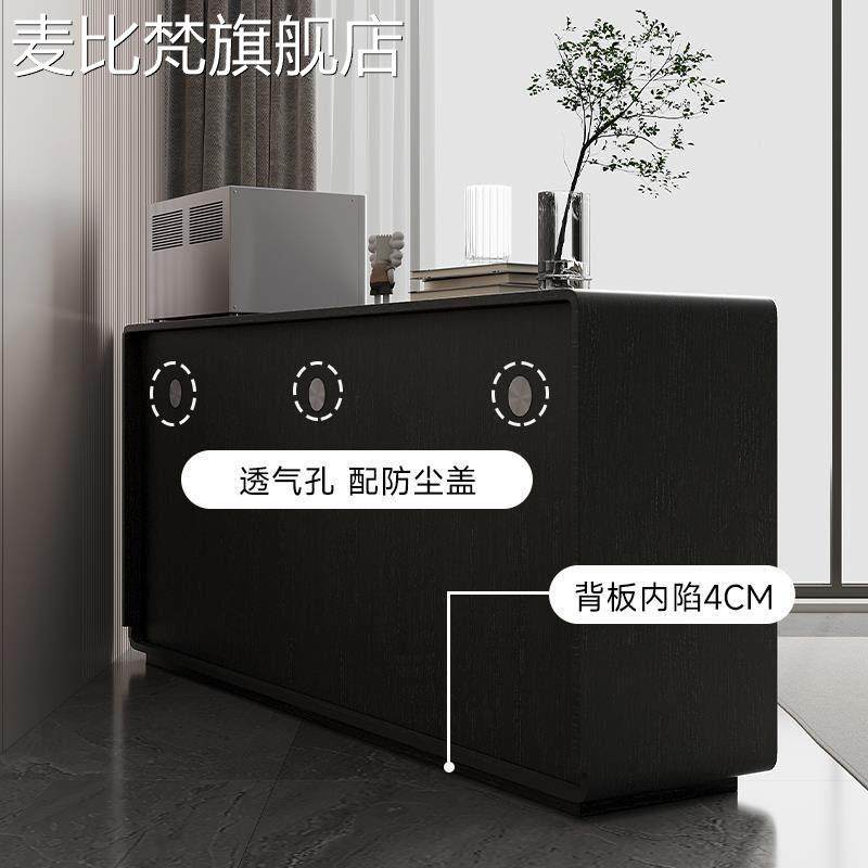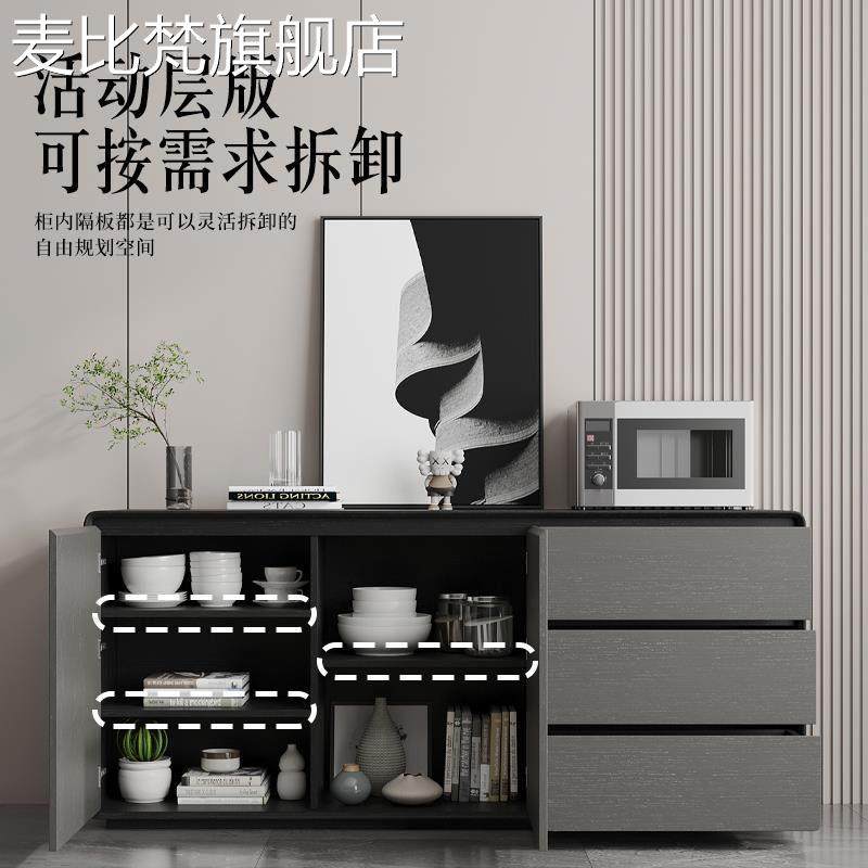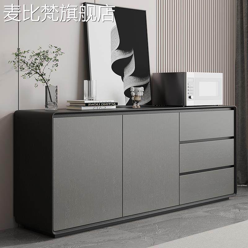 麦比梵黑色实木餐边柜现代简约靠墙储物柜收纳柜黑灰色轻奢风边柜玄关柜摆件饰品床笠拉车