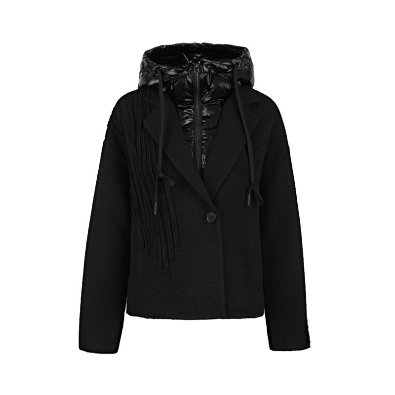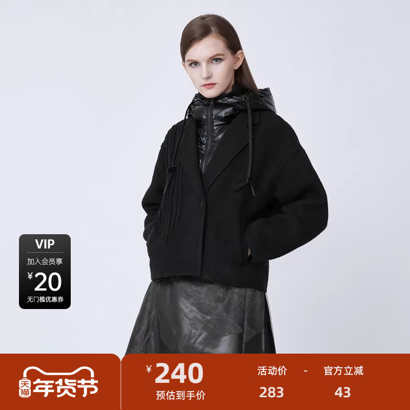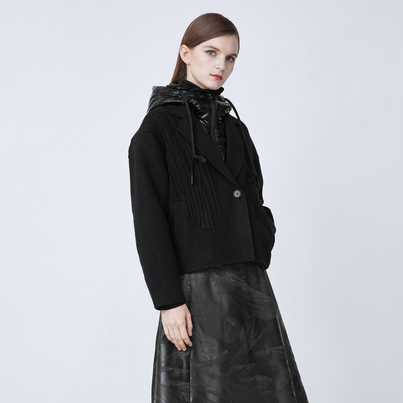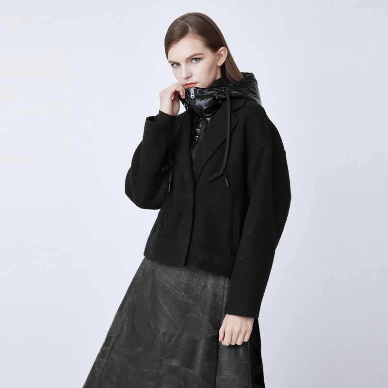 sdeer圣迪奥女装羽绒连帽拼接假两件肌理毛呢外套S21482215