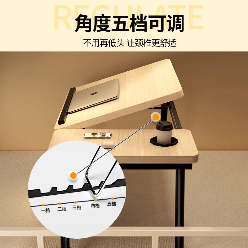 可升降折叠床上小桌子简约宿舍学生写字床上书桌学习调节高度支架家用卧室坐地飘窗懒人笔记本电脑办公小桌板