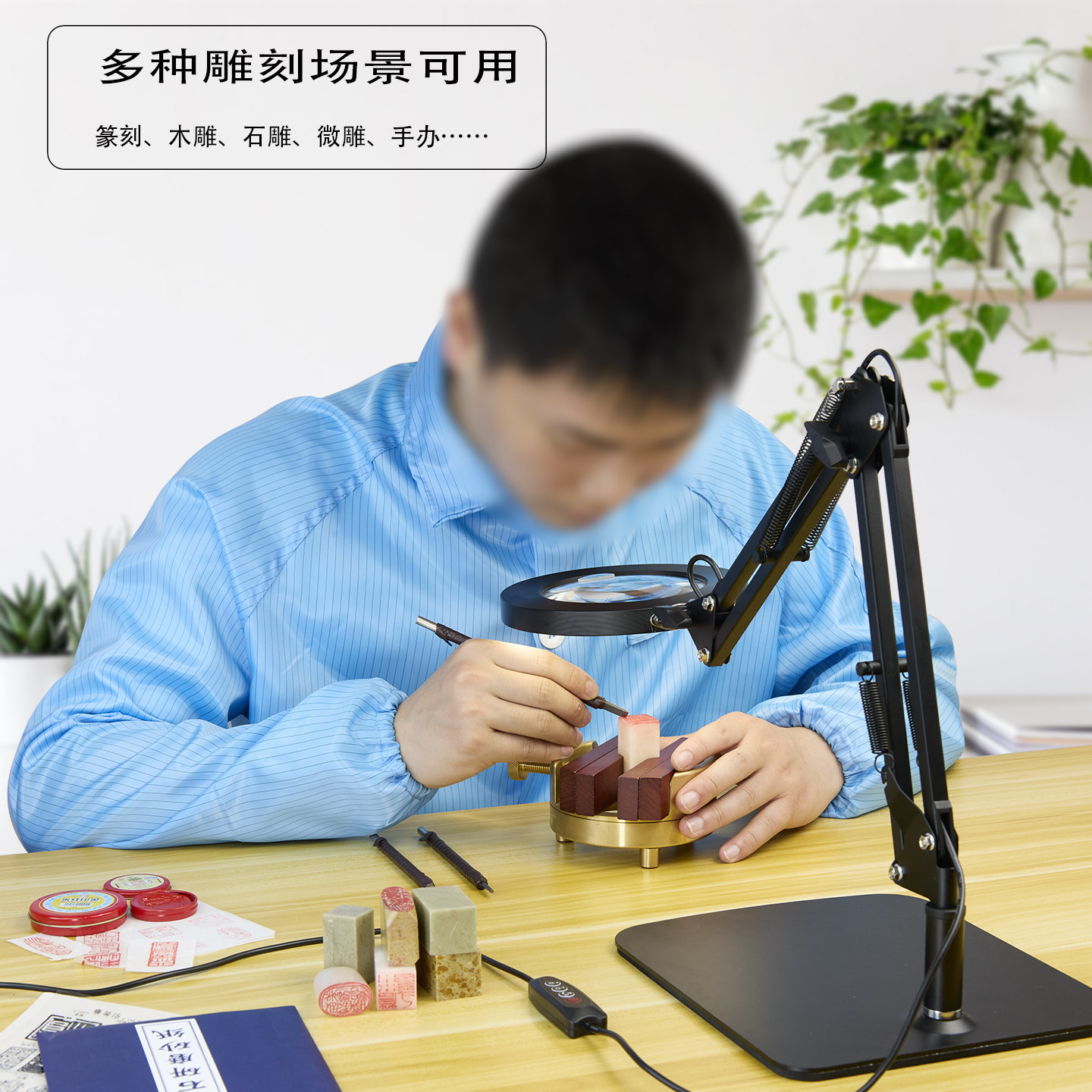 长道雕刻篆刻放大镜带灯子母镜片支架款手办模型工具微雕根雕玉石鉴定木雕玉雕手工高清高倍子母台式放大镜