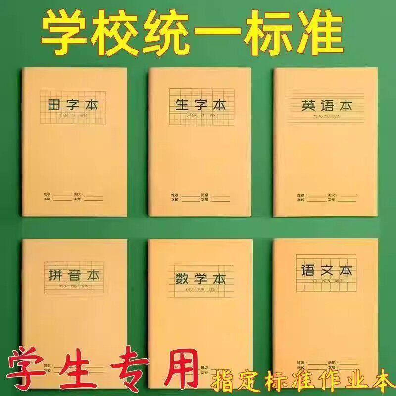 深圳市小学同步作业本小学生1-6年级学校统一作业本田字拼音数学课文写话写字本英语本3-6大作文本练字10本装