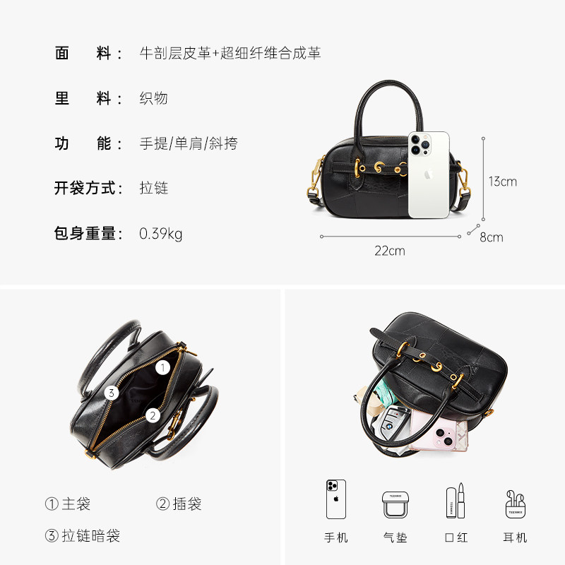 天美意真皮手提包女2025新款百搭复古贝壳包单肩斜跨包牛皮小方包