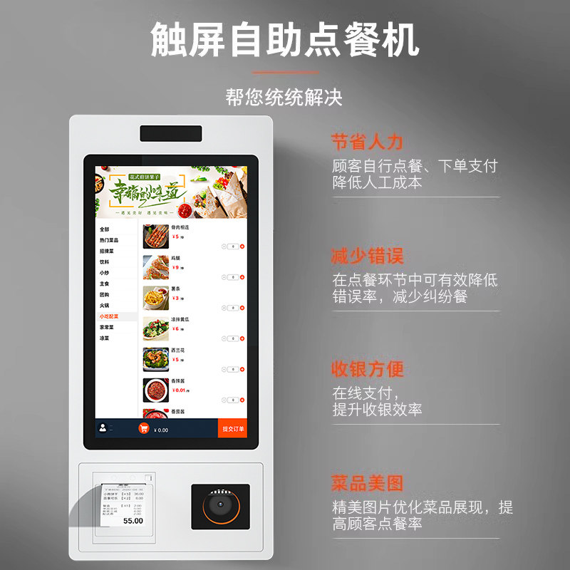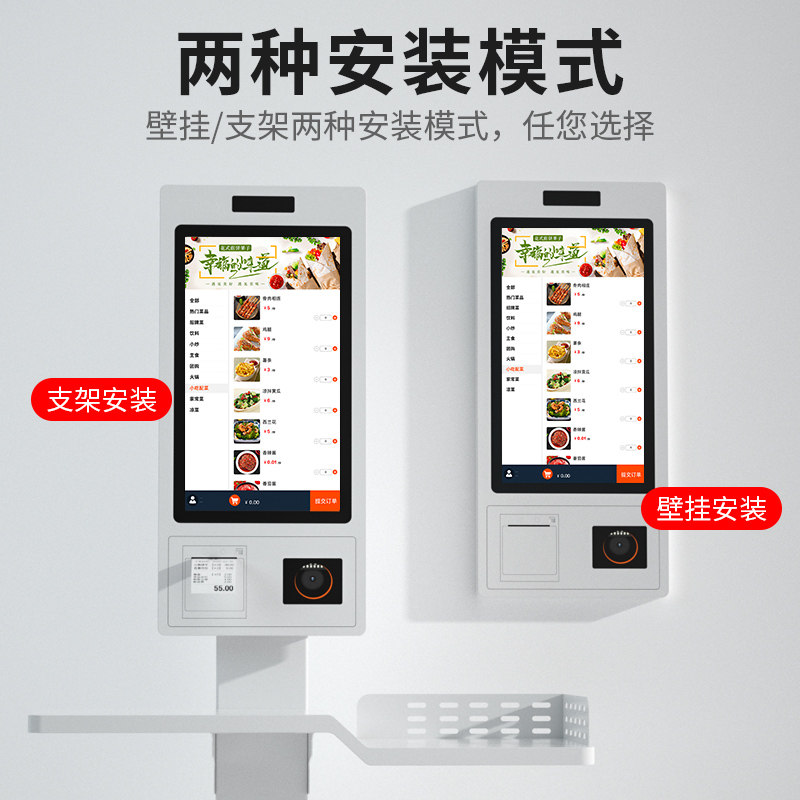 自助点餐机收银机一体机餐饮超市结账机自动下单扫码支付餐厅快餐汉堡炸鸡咖啡店收银终端出单打印点单收款机