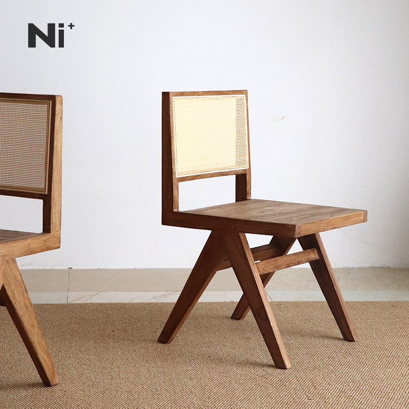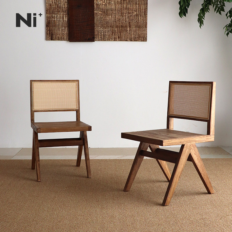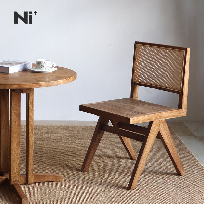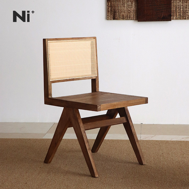 Ni+尼家中古侘寂实木藤编餐椅日式靠背设计师昌迪加尔椅子书桌椅